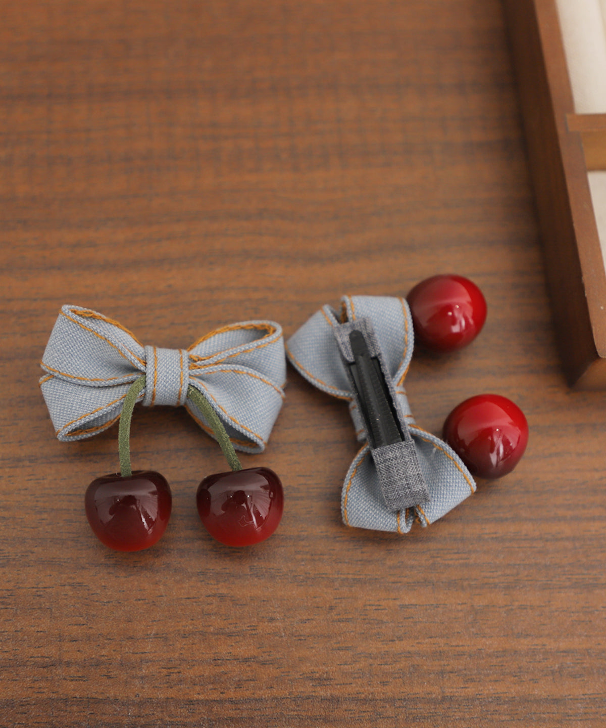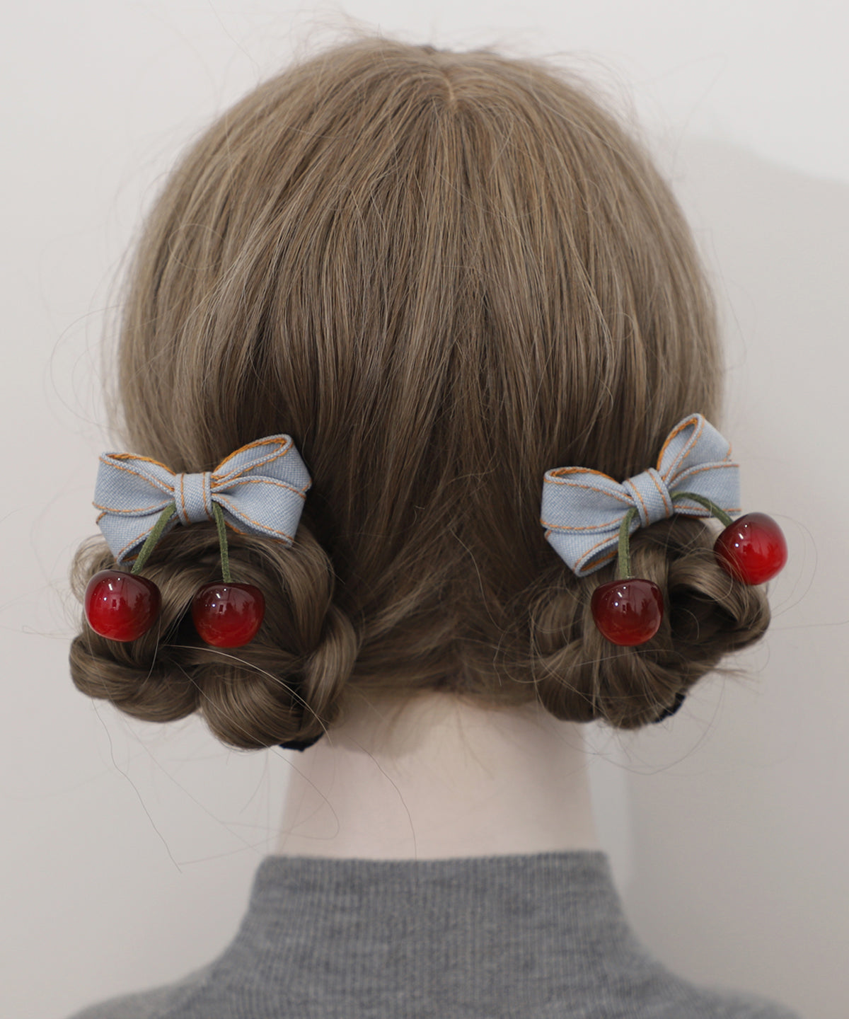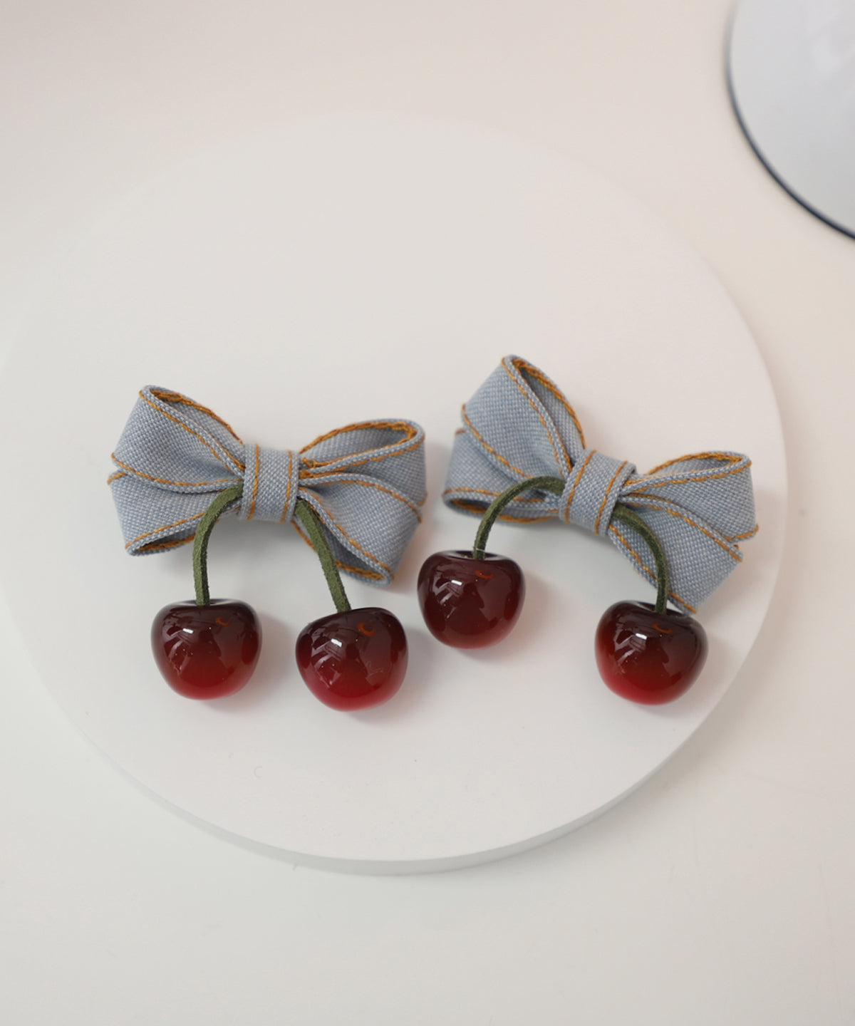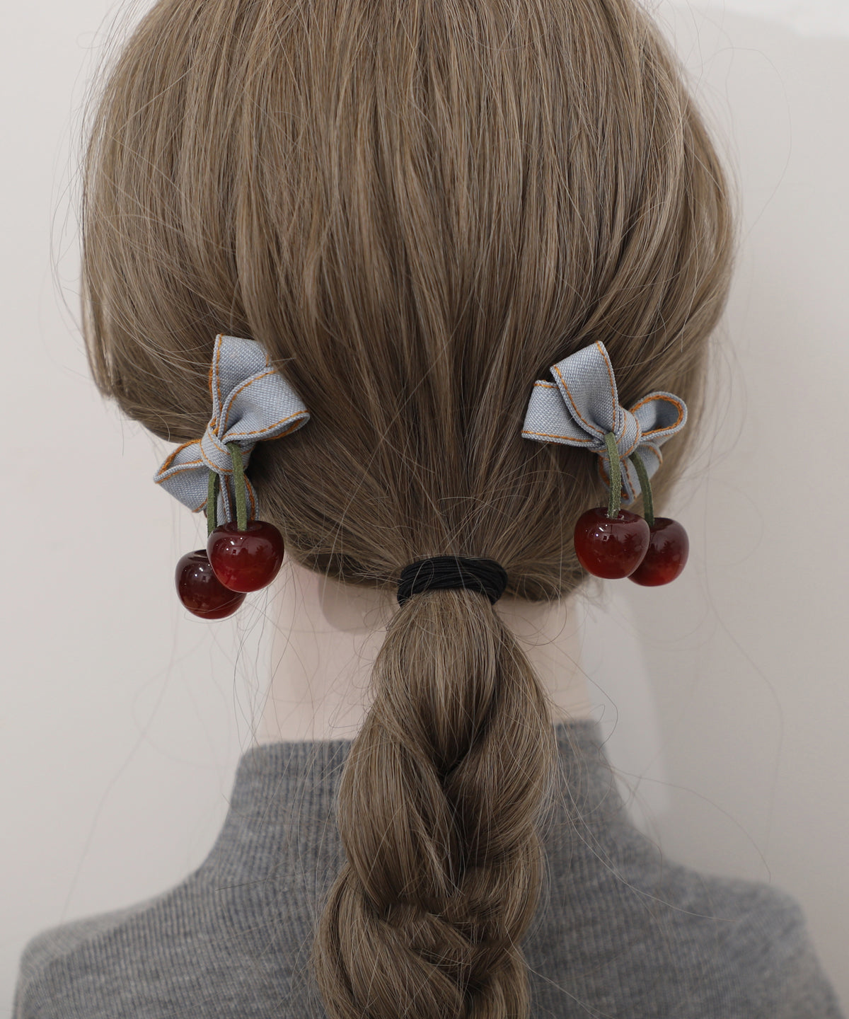 Vintage Multicolor Alloy Denim Resin Cherry A Pair Hairpin
