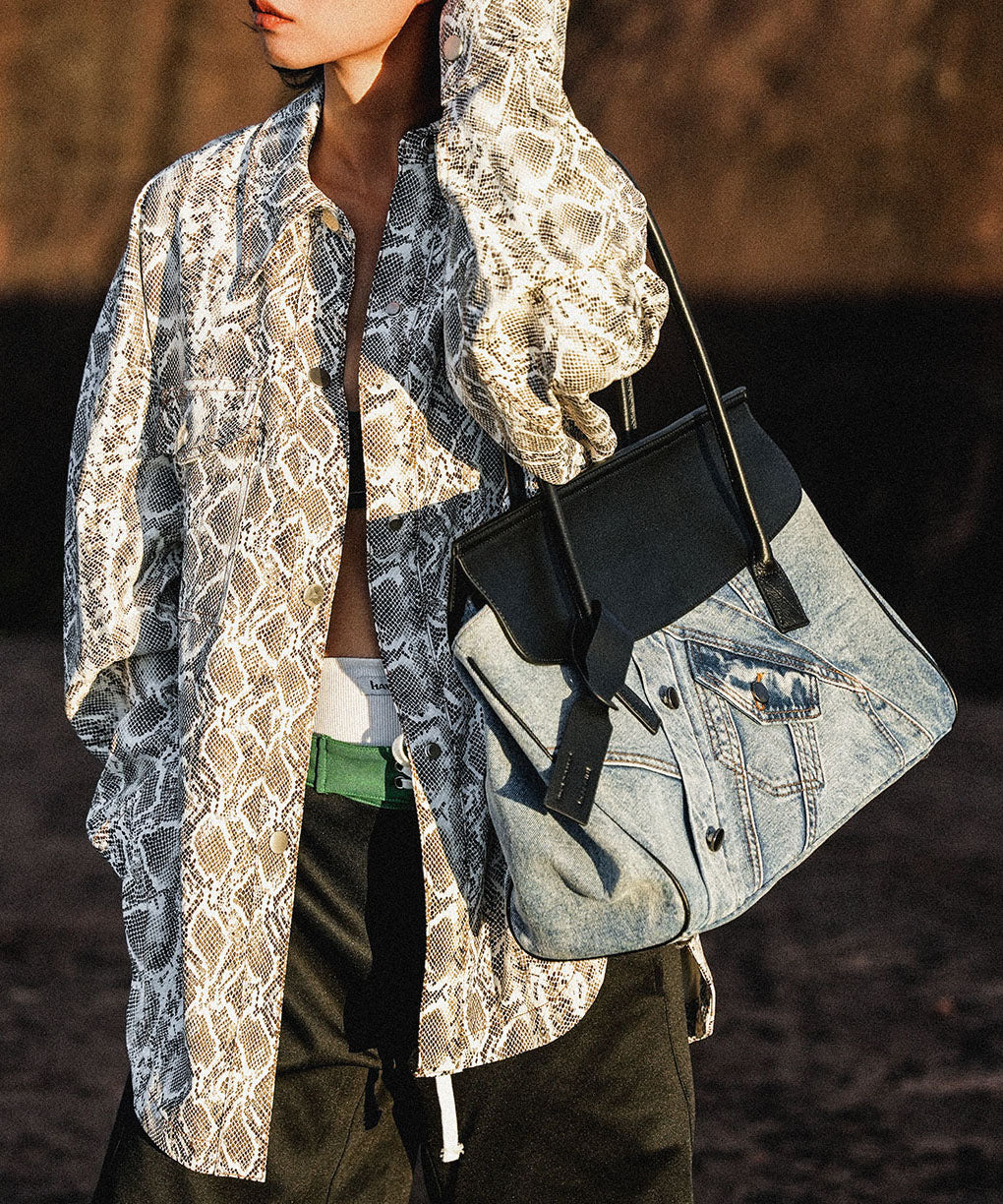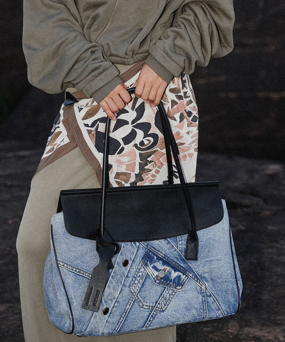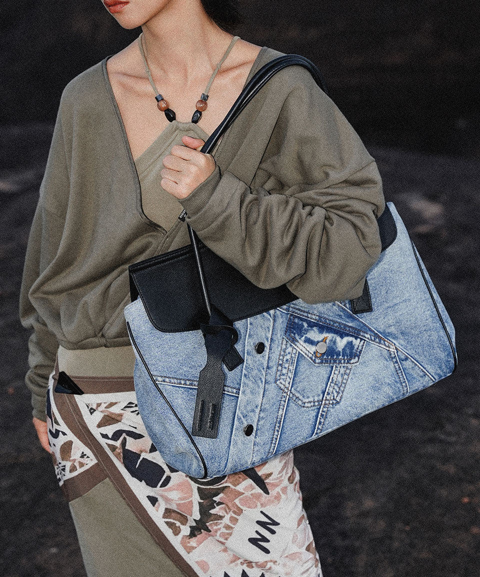 Vintage Denim Blue Patchwork Leather Large Capacity Shoulder Bags
