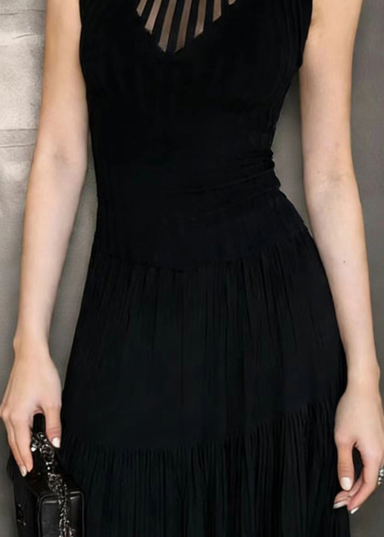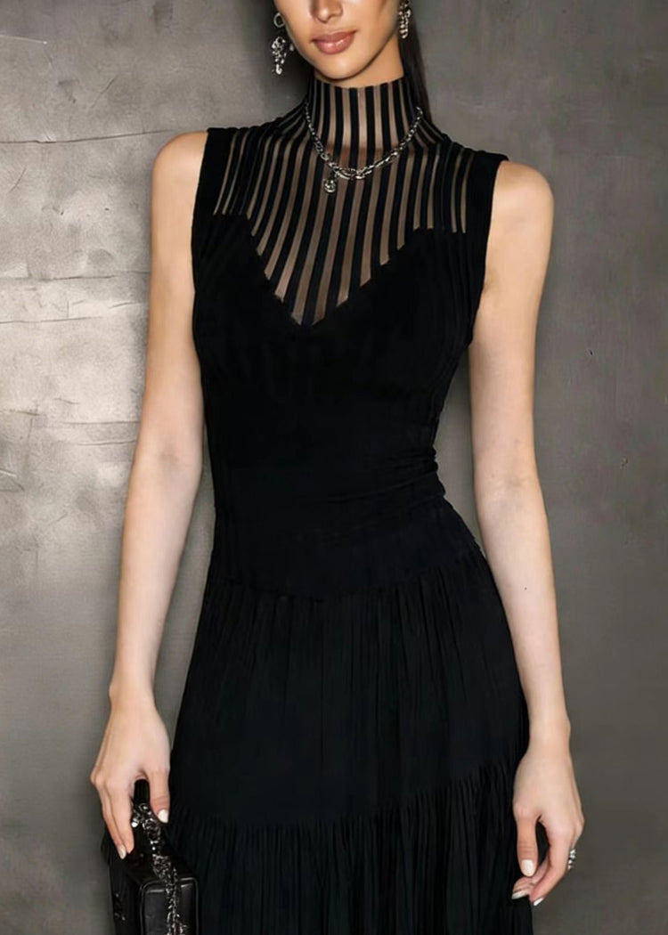 Classy Black Hign Neck Hollow Out Spandex Top Sleeveless