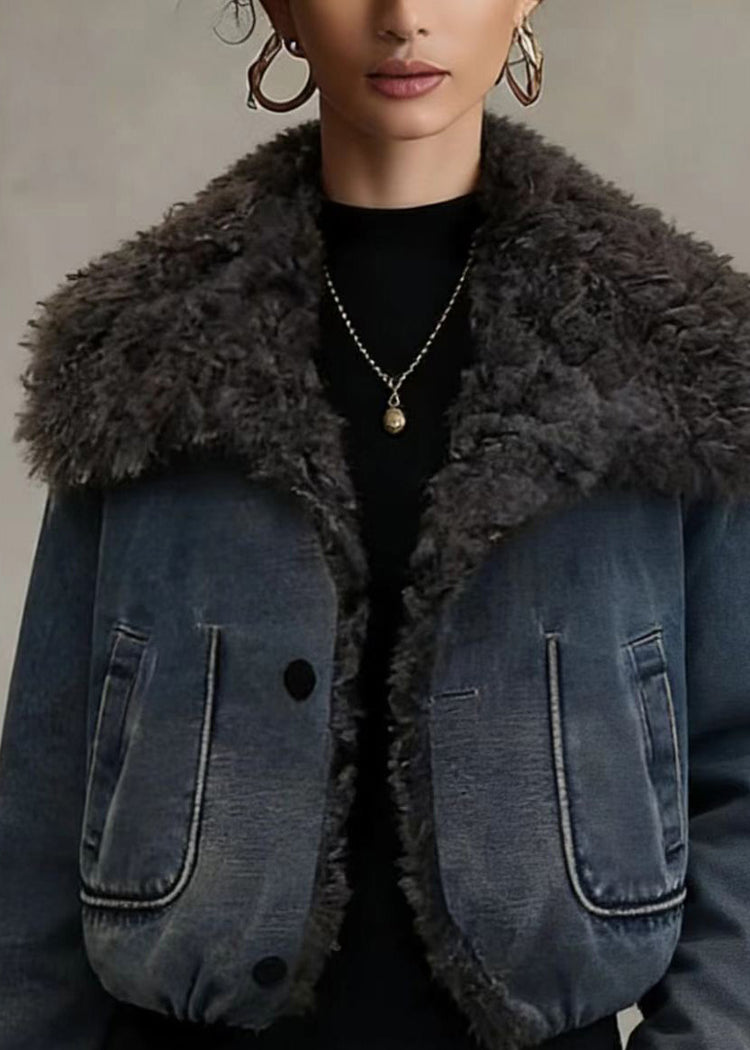 Stylish Blue Teddy Faux Fur Patchwork Fine Cotton Filled Jacket Winter