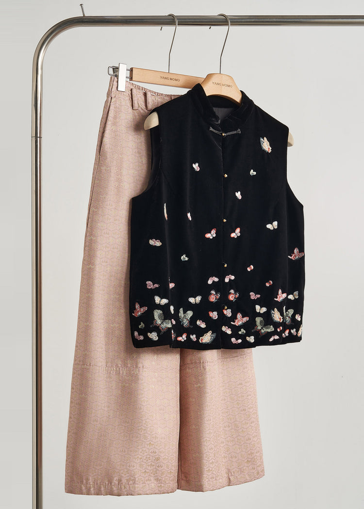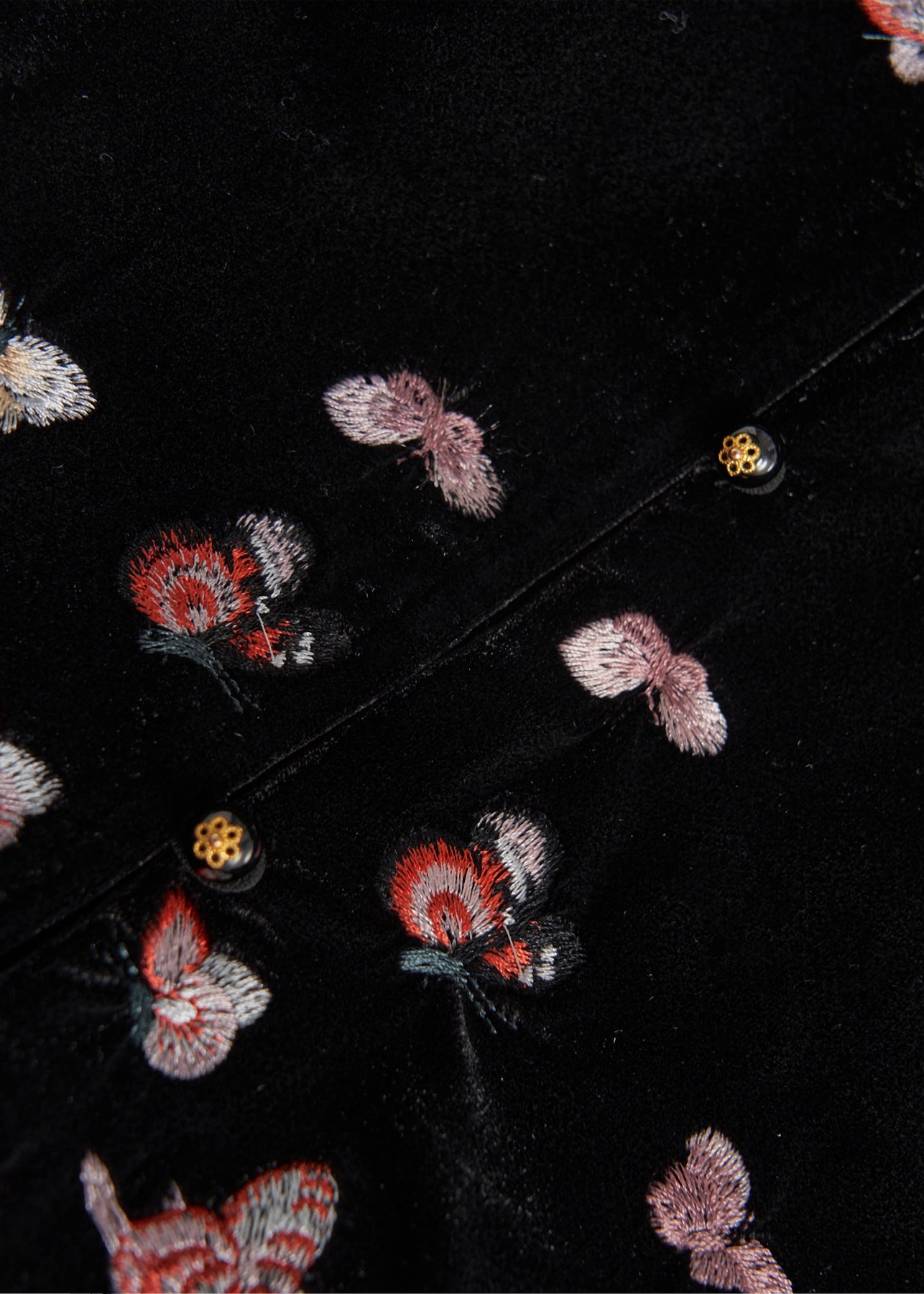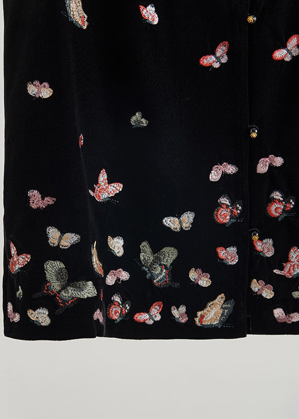 Modern Black Embroidered Butterfly Silk Velvet Vest Fall