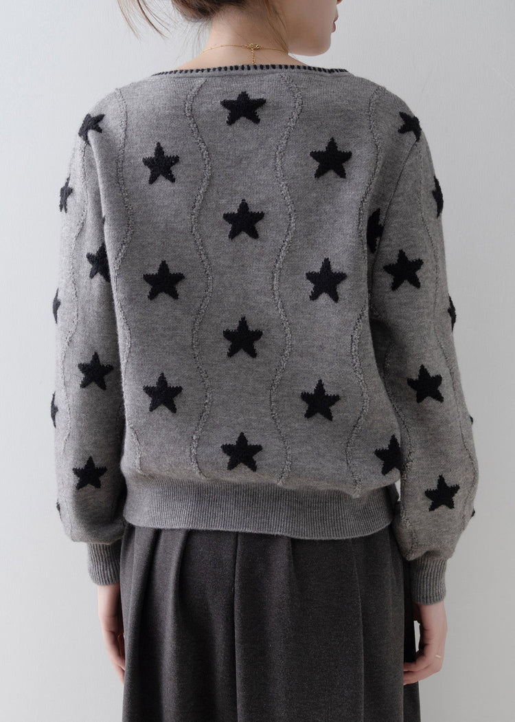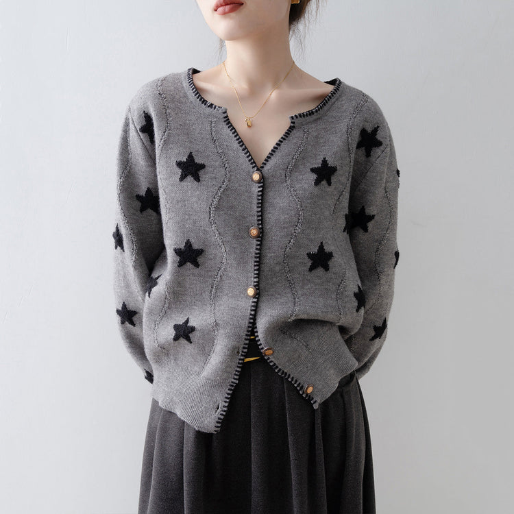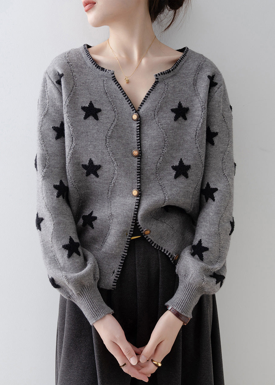 Loose Grey V Neck Button Knit Cardigan Spring