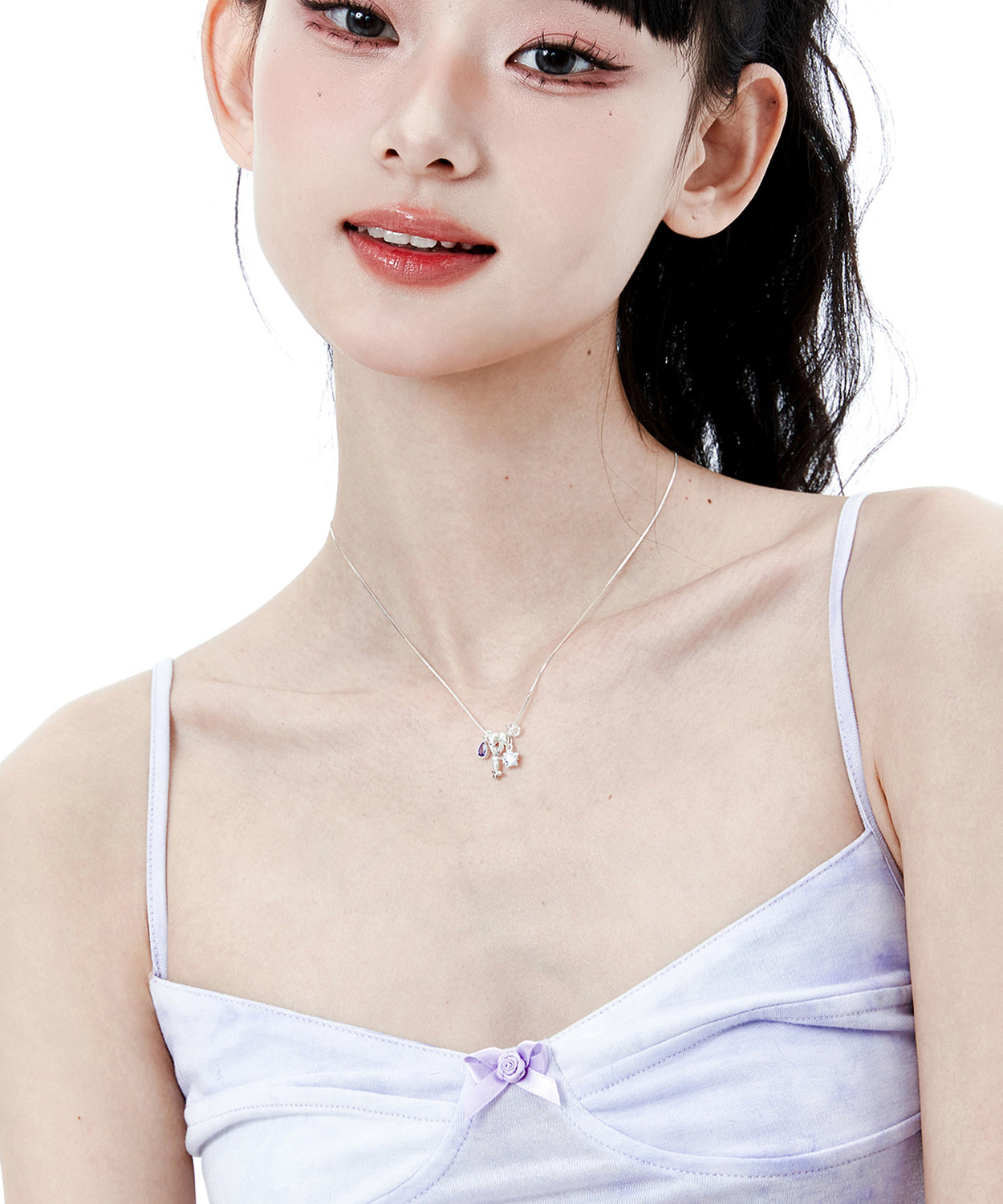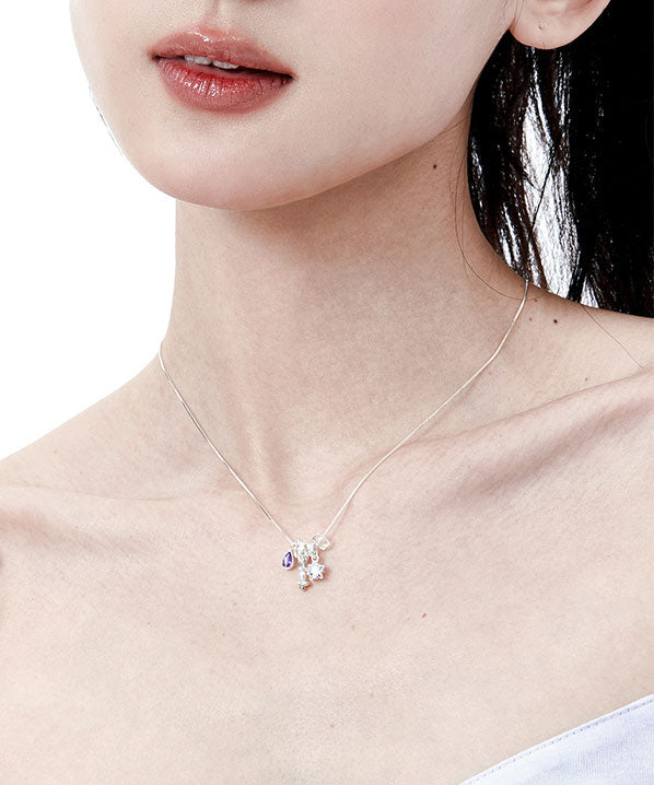 Art Purple Crystal Five Pointed Star Silver Pendant Necklace