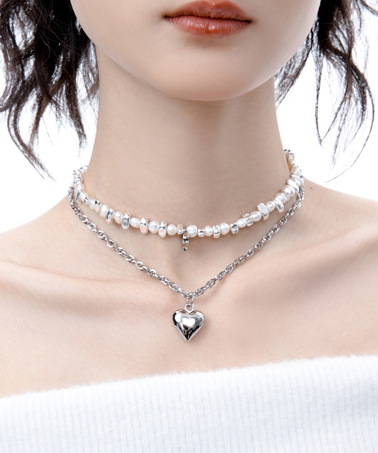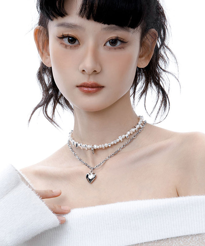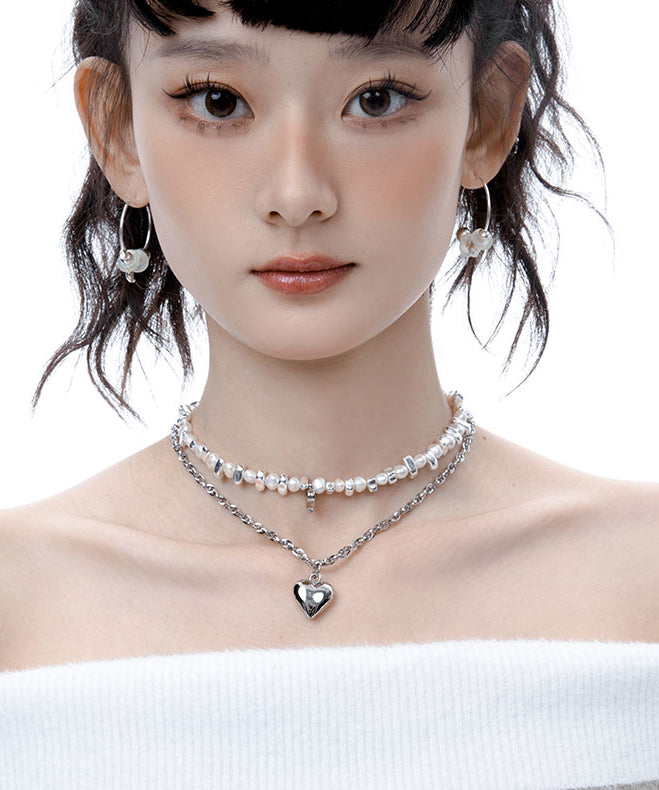 Boutique Pearl Love Heart Pendant Two Piece Set Alloy Necklace