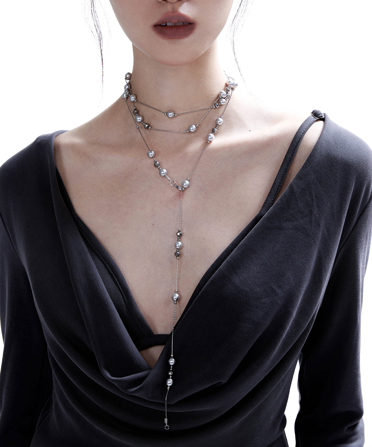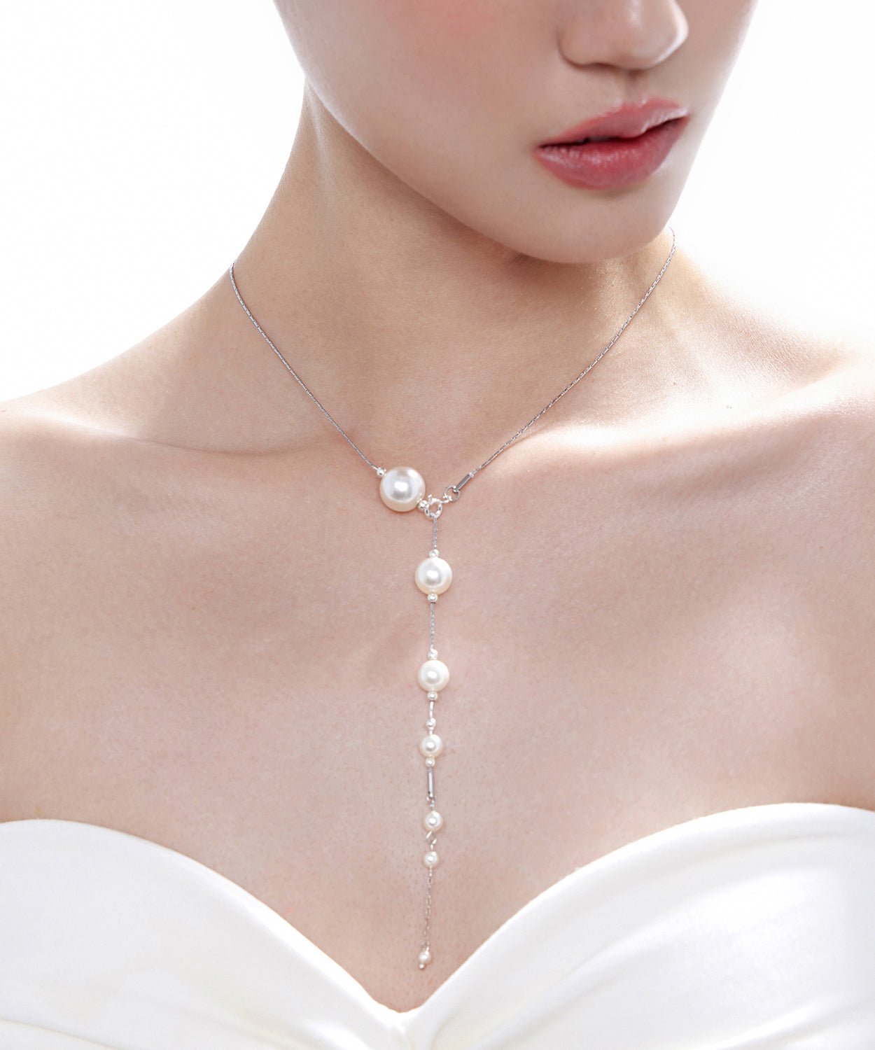 Chic White Pyered Pearl Tassel Multi Layered Silver Necklace