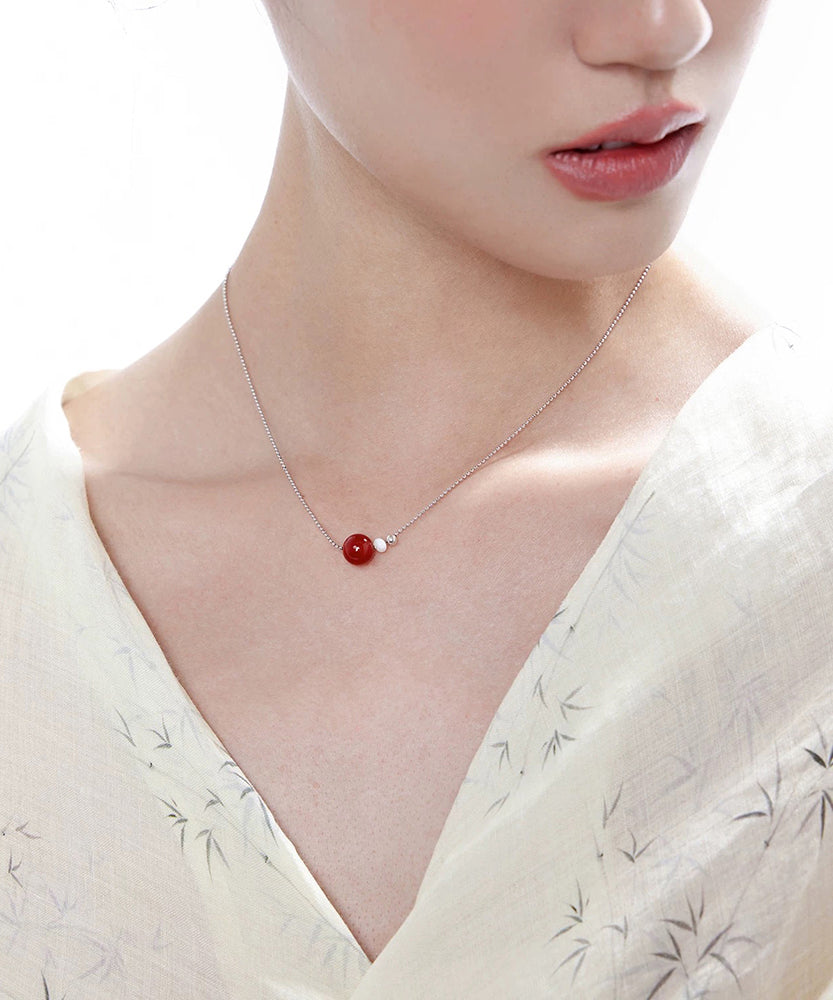 New Red Sphere Agate Carrying Pearl Copper Necklace