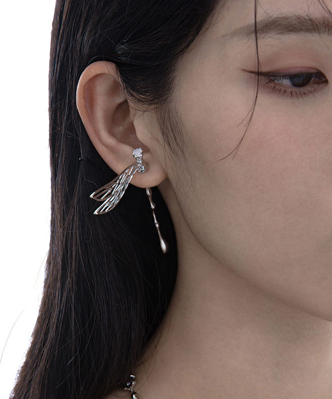 Original Design Dragonfly Hollow Out Silver Single Stud Earrings