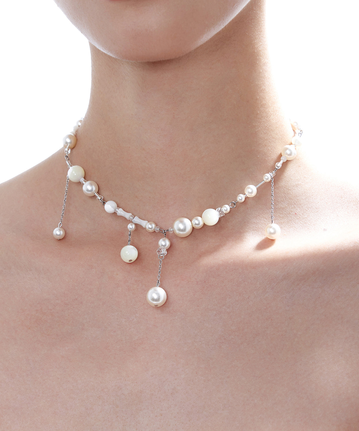 Stylish White Tassel Pearl Adjustable Silver Choker