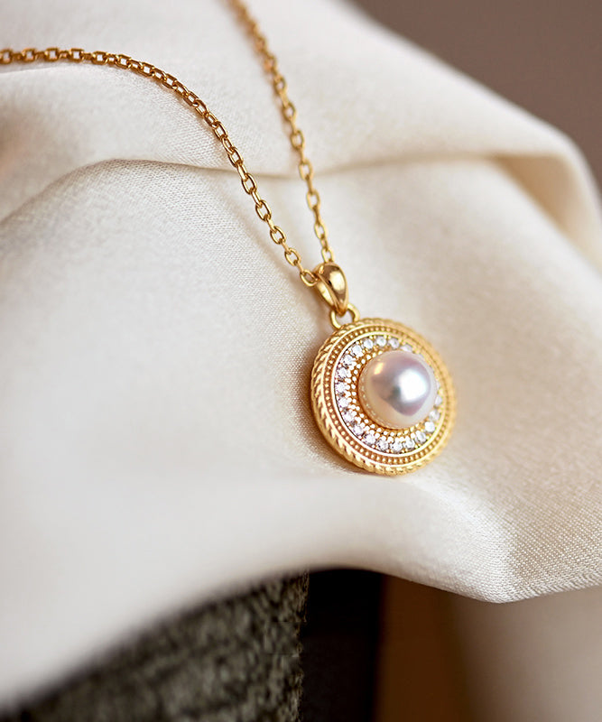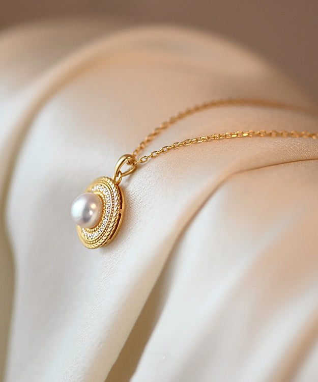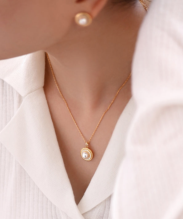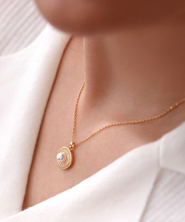 Beautiful Round Pearl Adjustable Gold Plated Pendant Necklace