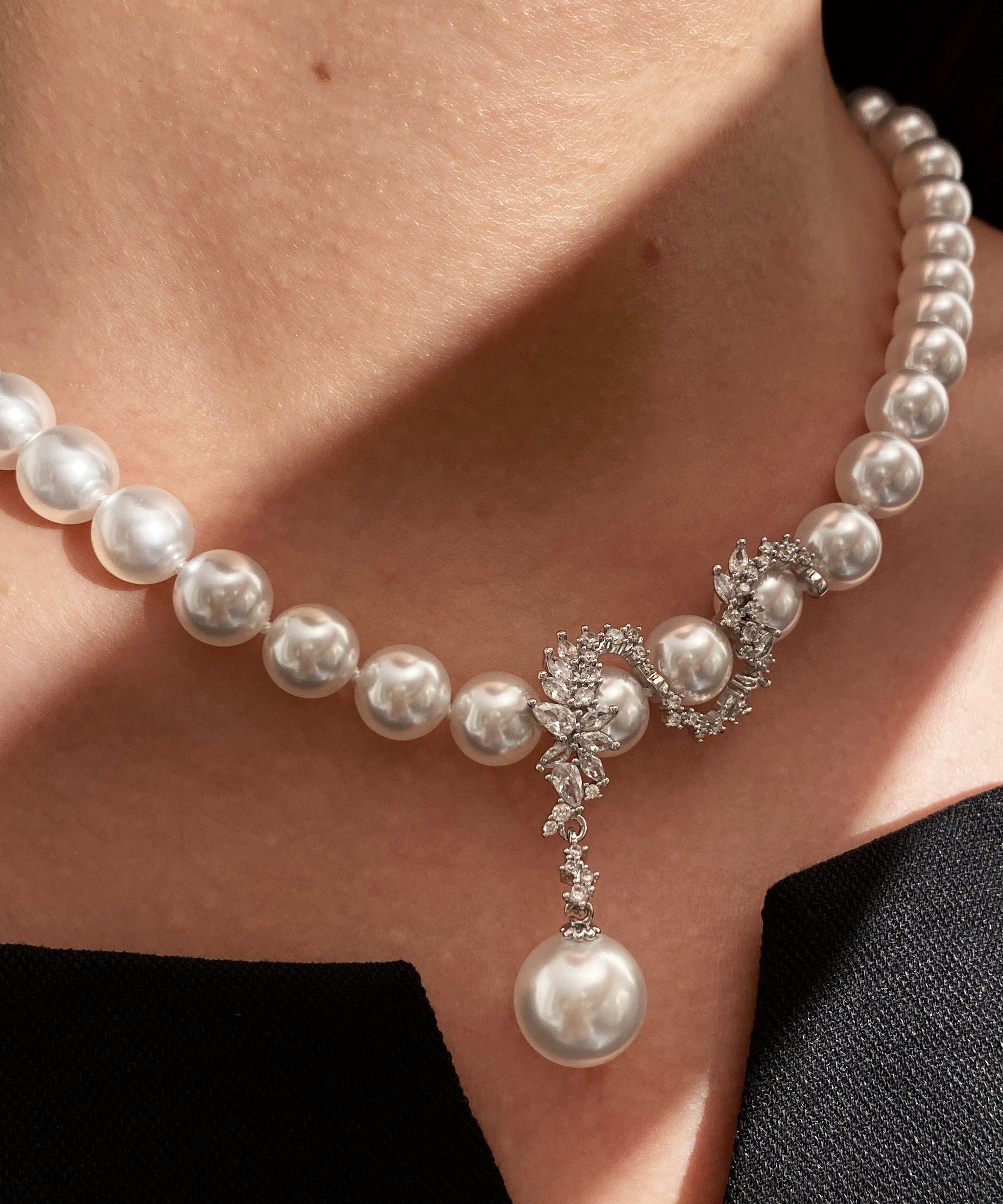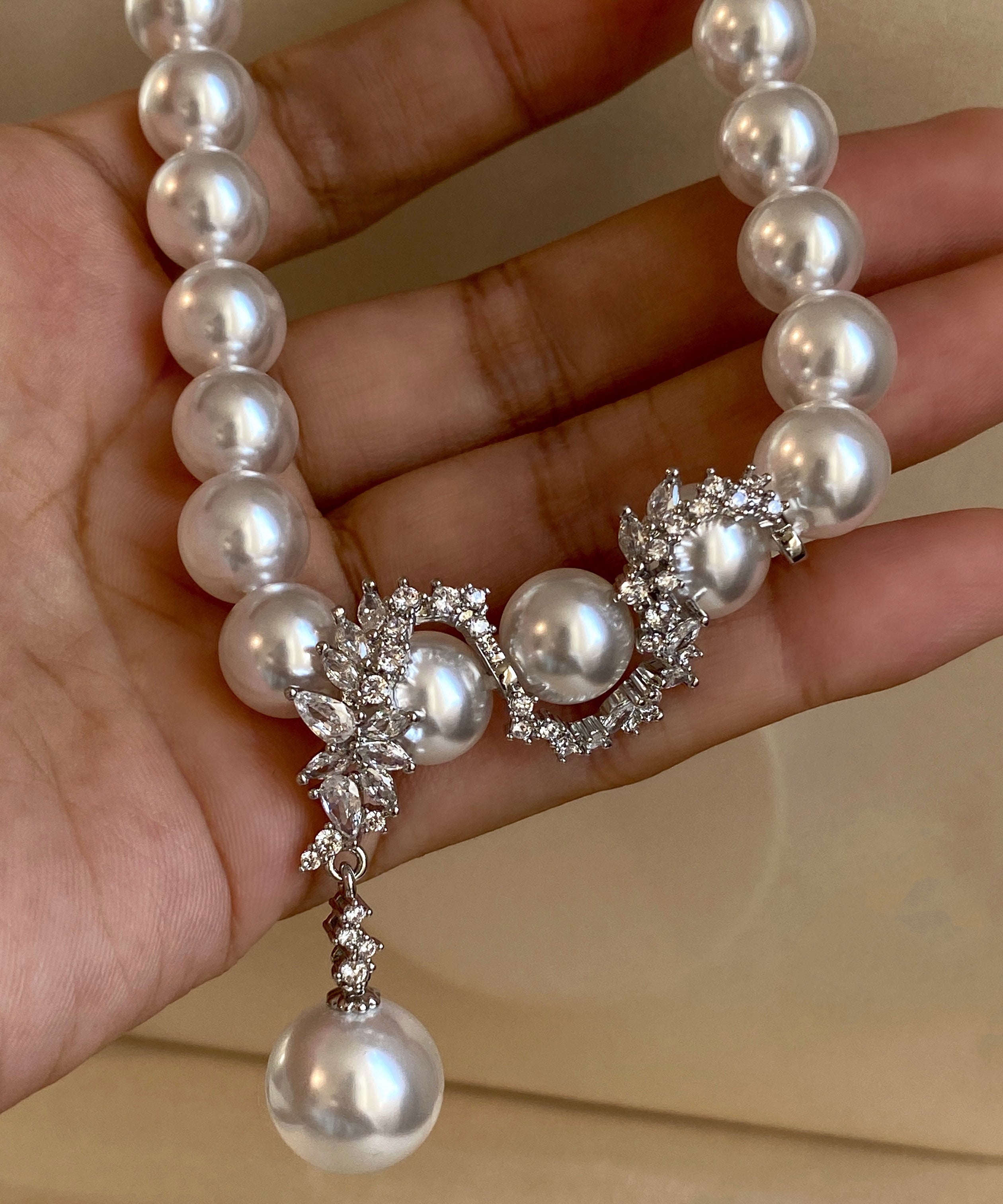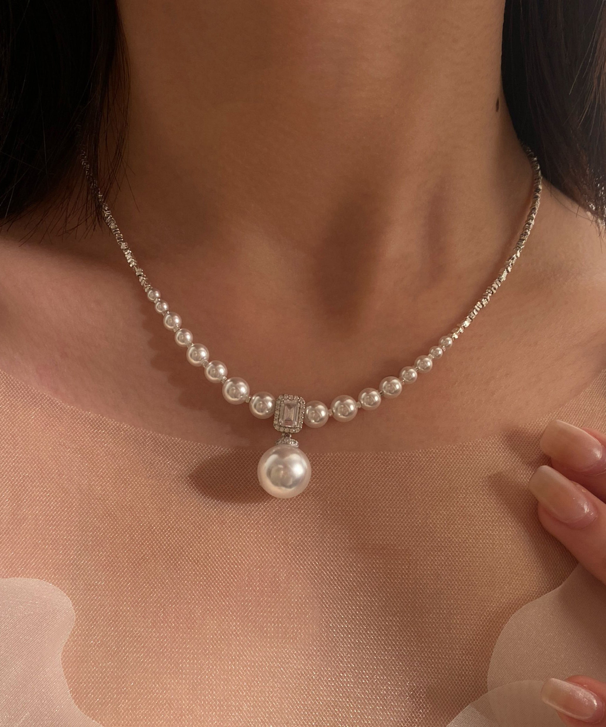 Light Luxury Imitation Natural Seawater Extreme White Pearl Alloy Necklace