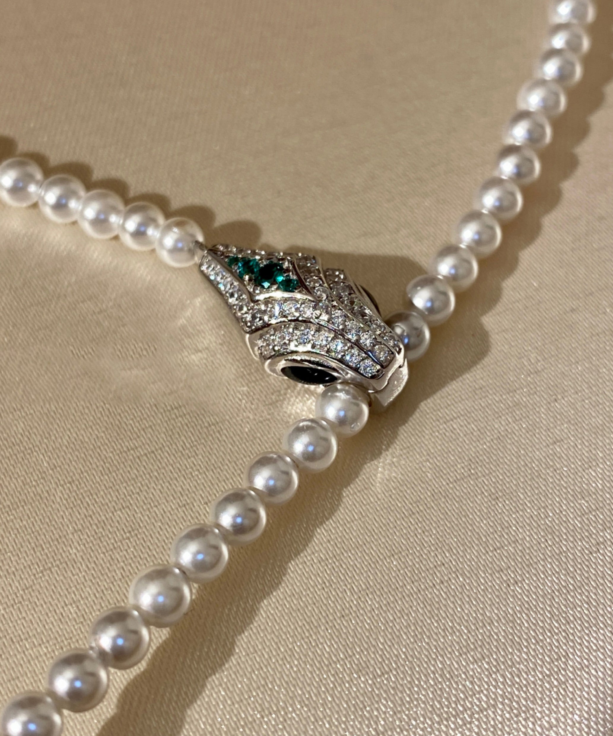 Boutique White Pearl Spirit Snake Zircon Sweater Chain Alloy Necklace