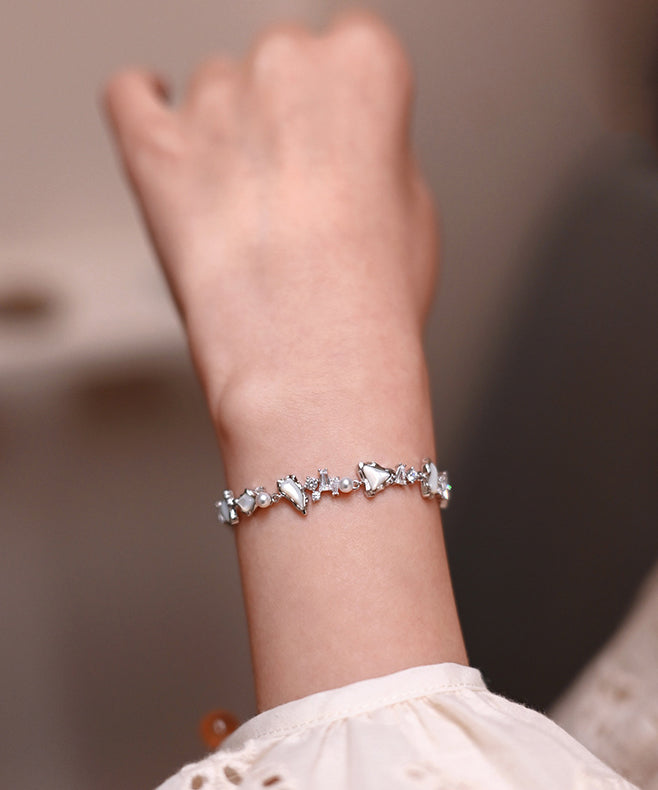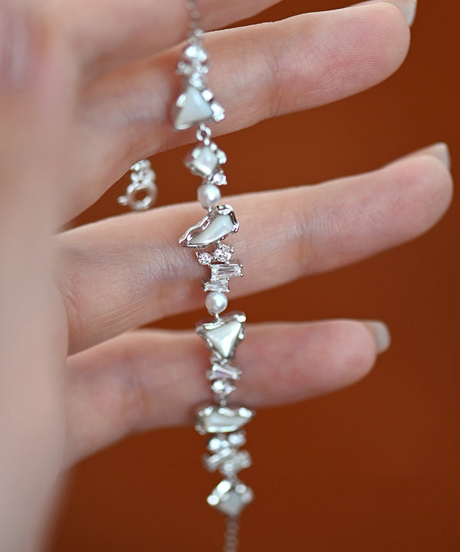 Chic White Natural Freshwater Pearl Mother Of Pearl Zircon Adjustable Silver Bracelet