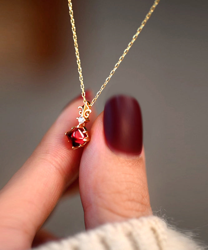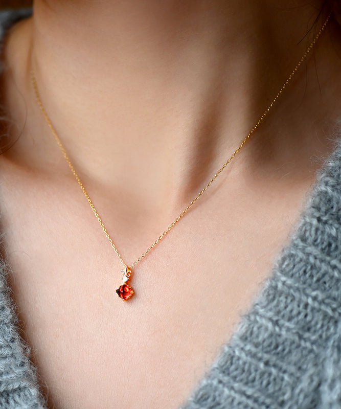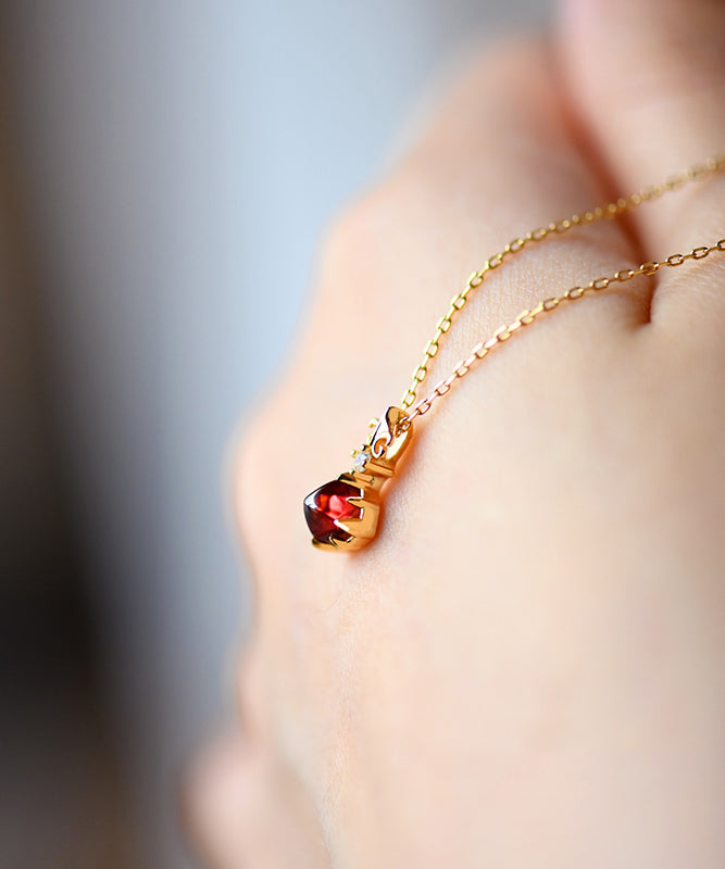 Elegant Red Garnet Adjustable 14K Gold Pendant Necklace