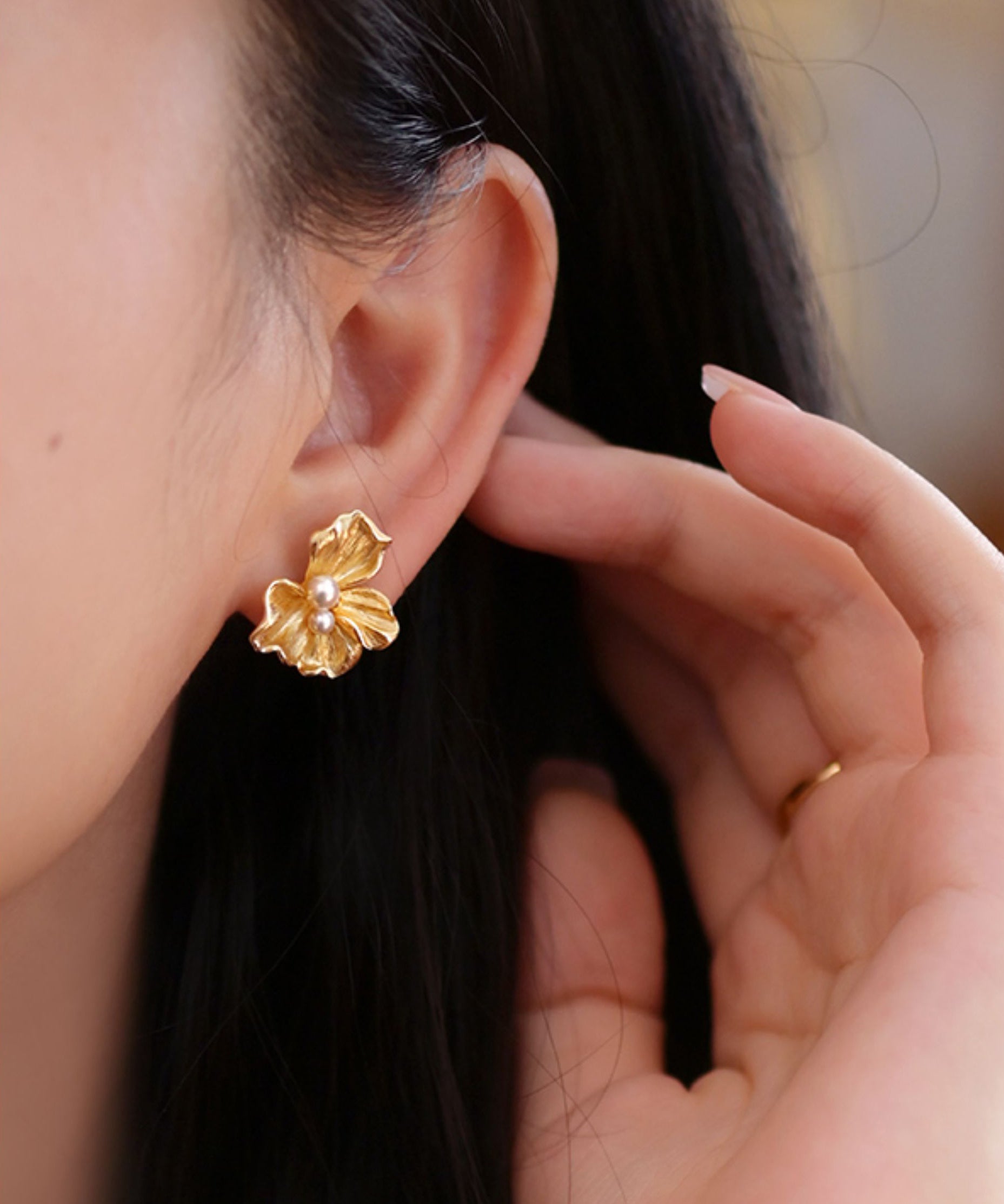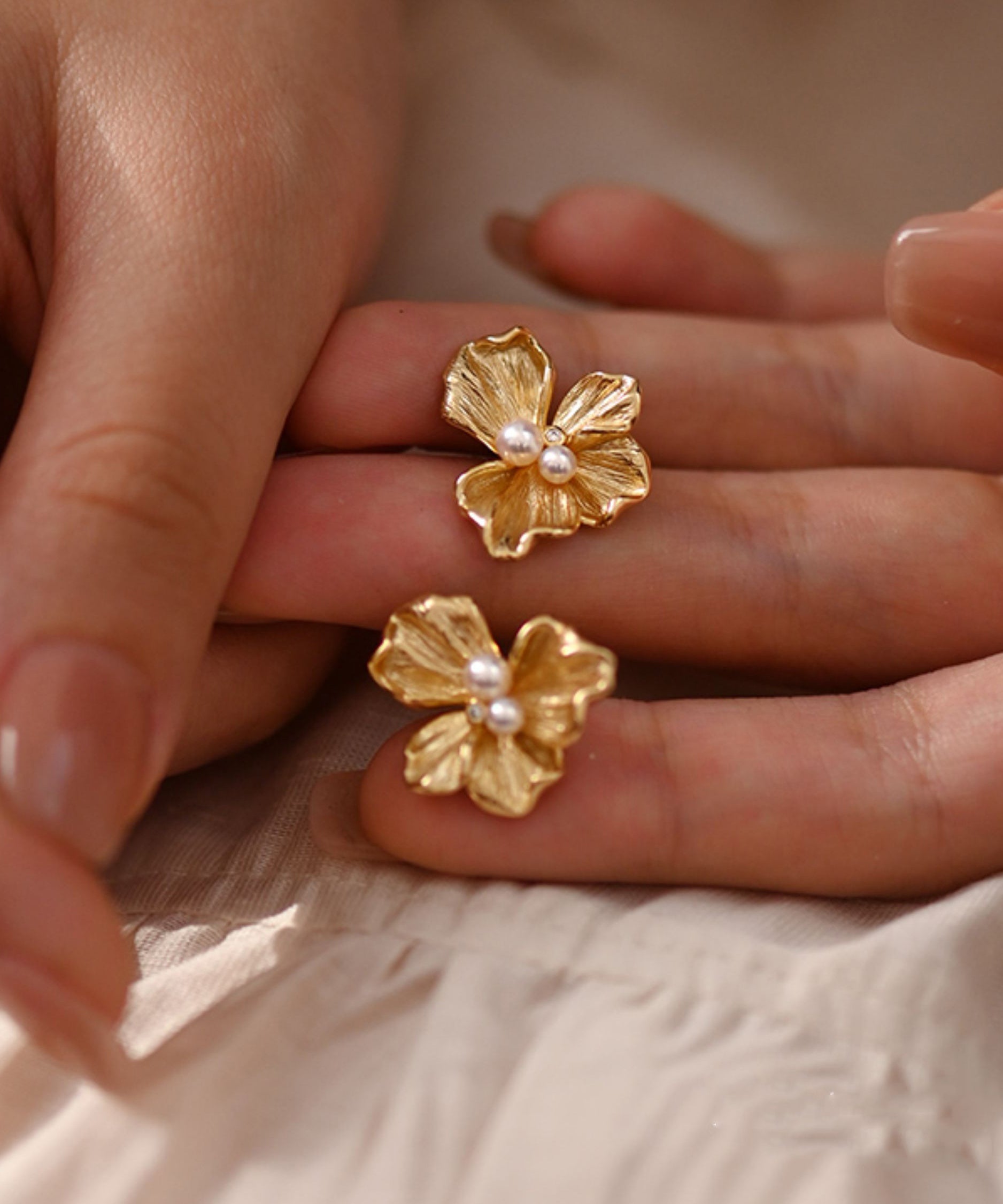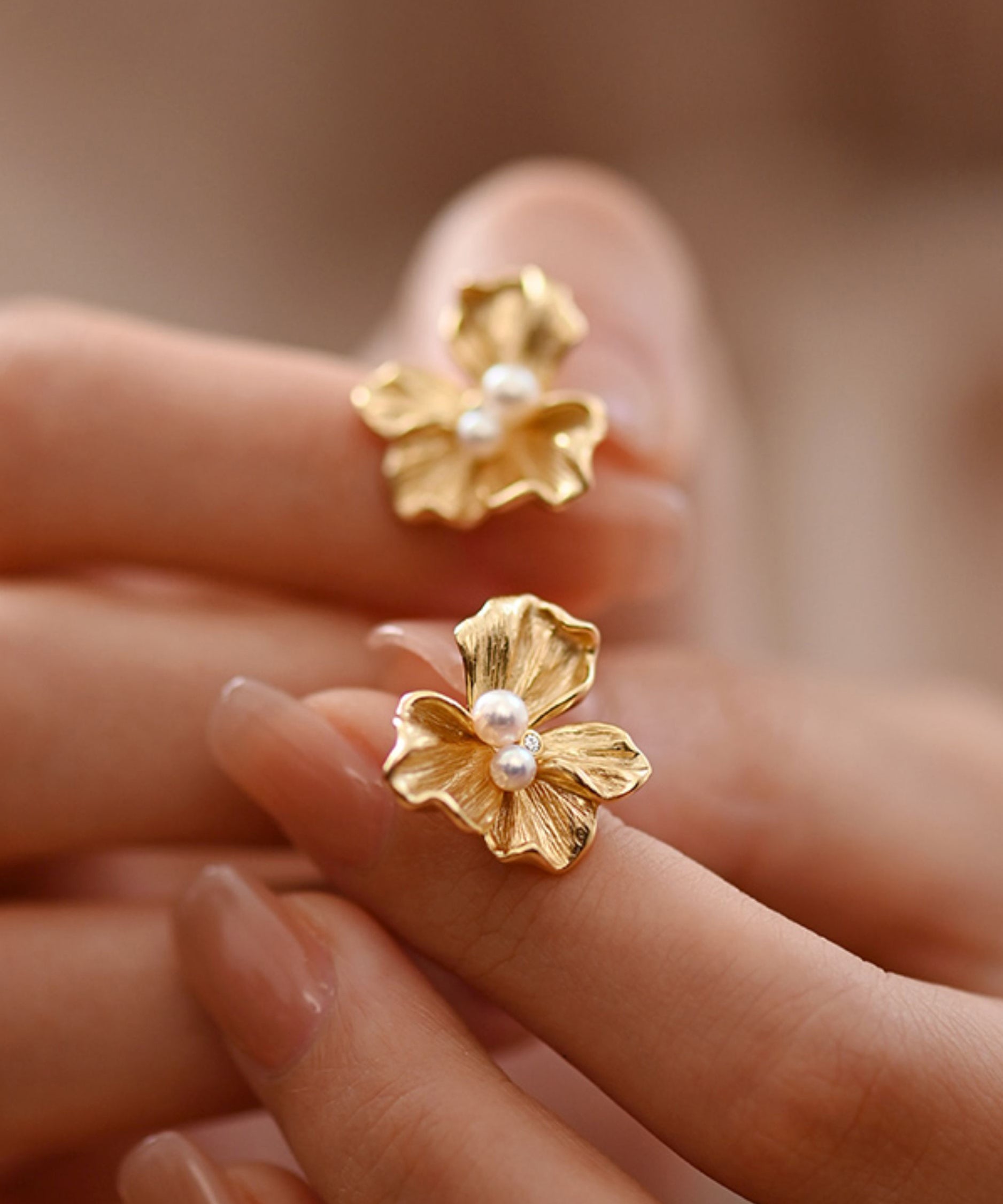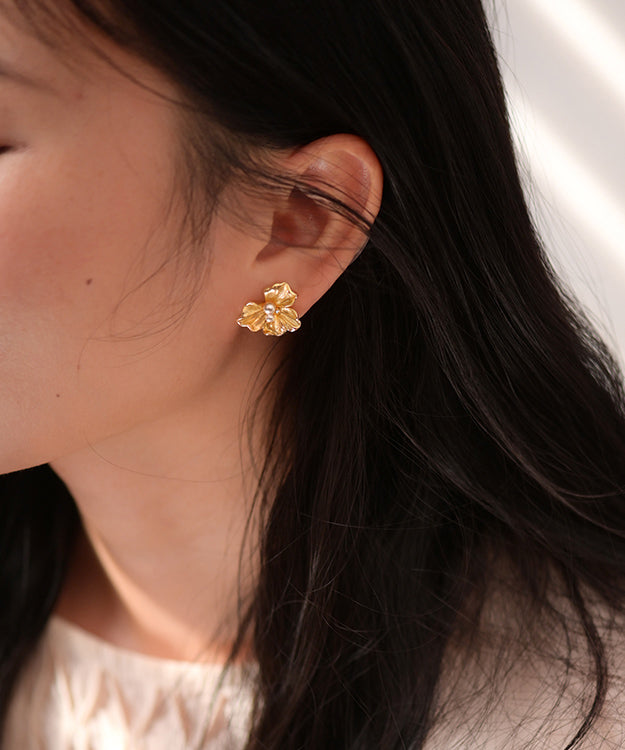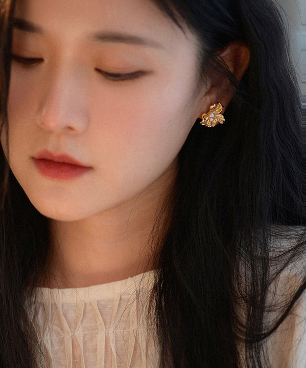 Fine Gold Floral Pearl 14K Gold Stud Earrings