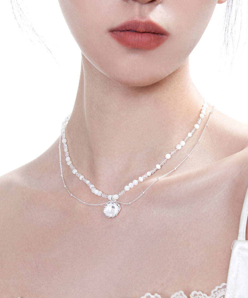 Boutique Gradient Size Beaded String Zircon Small Square Silver Choker