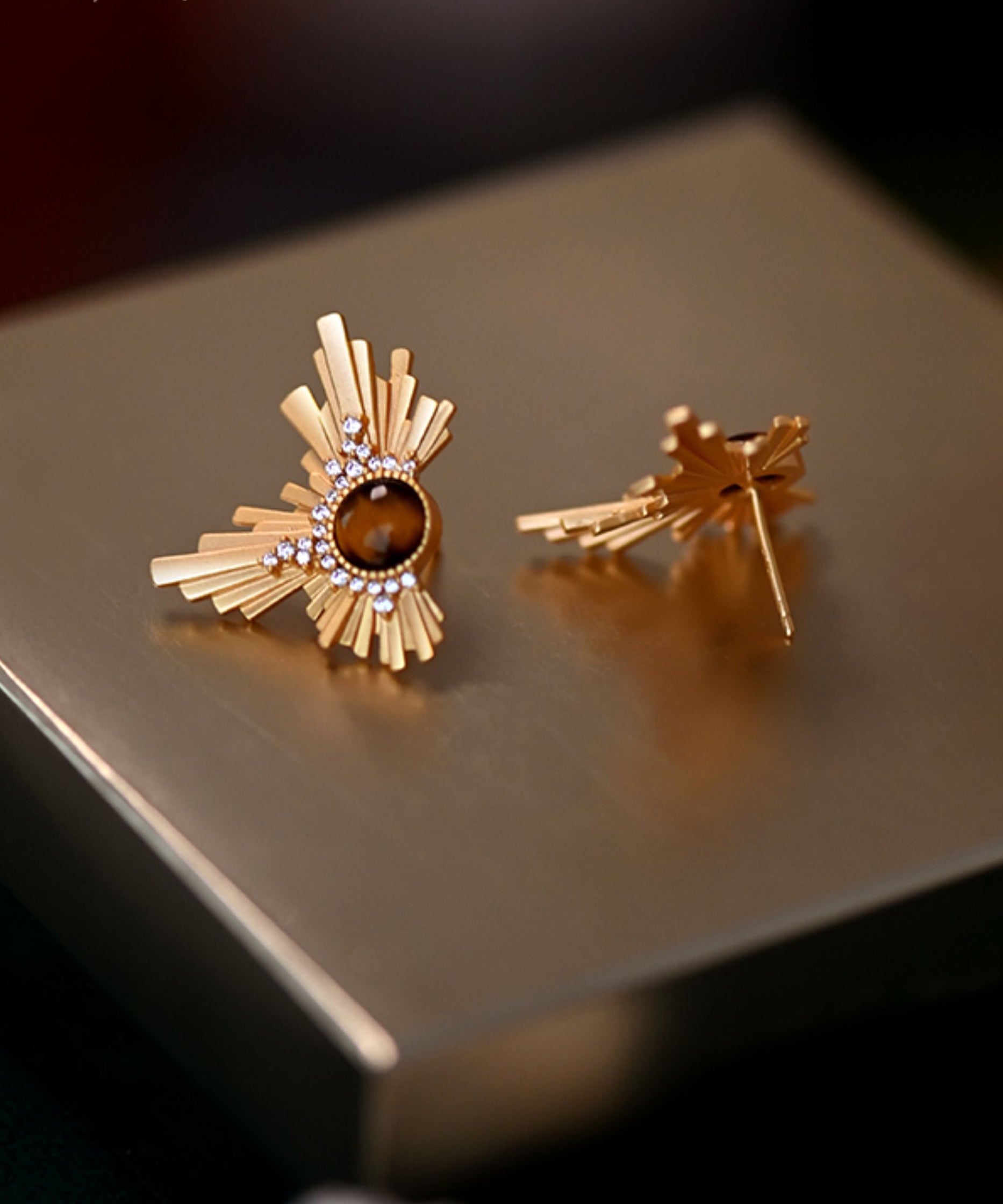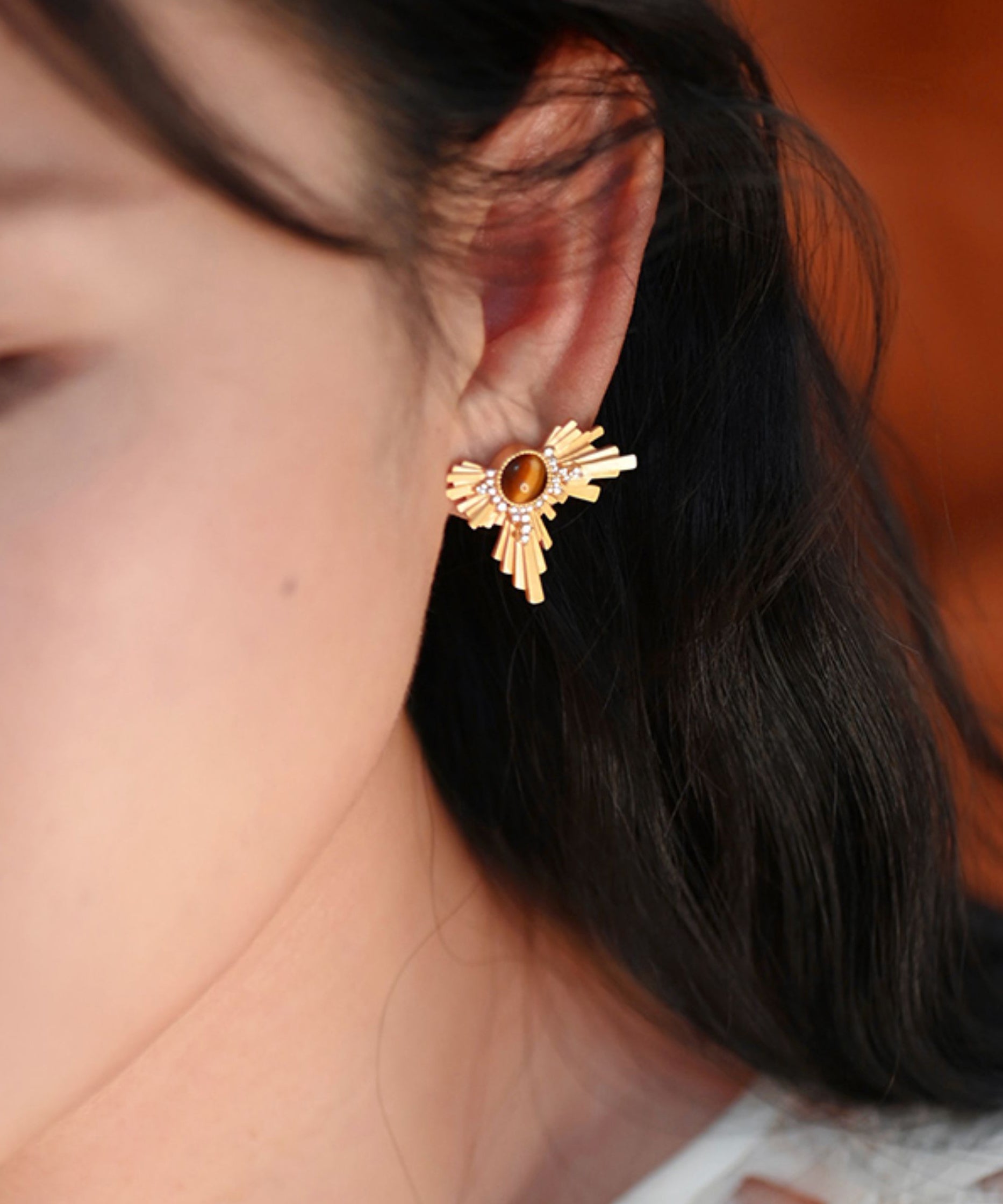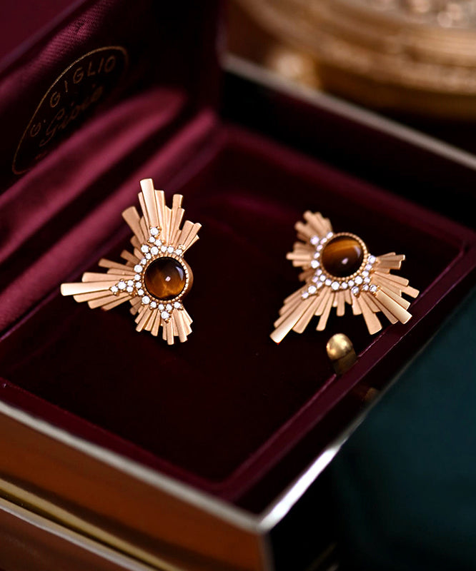 Gilded Amber Cat's Eye Original Design 14K Gold Stud Earrings