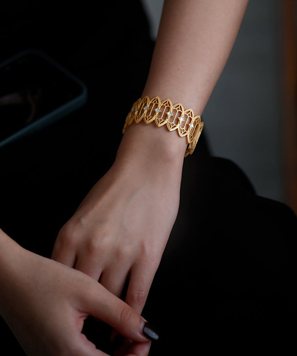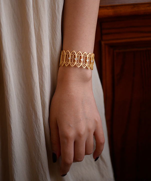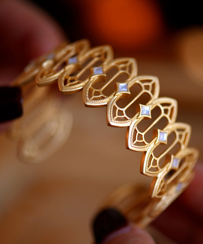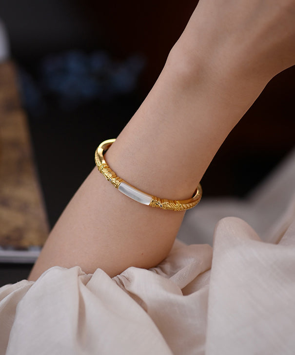 Stylish Hollow Out Natural Mother Of Pearl 14K Gold Cuff