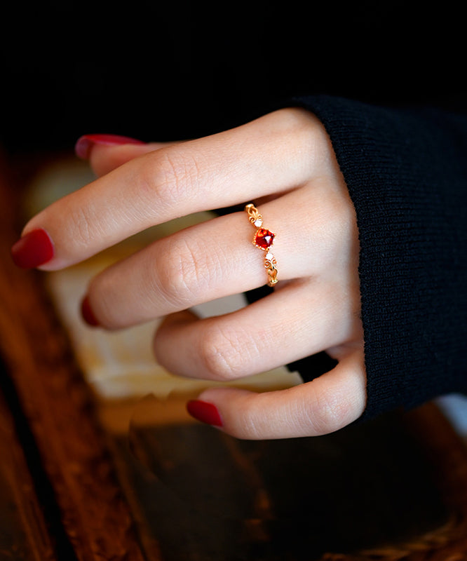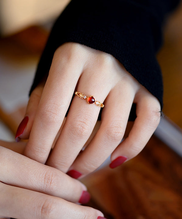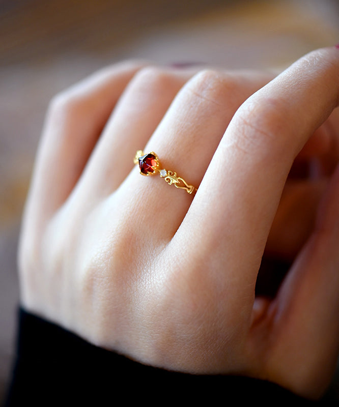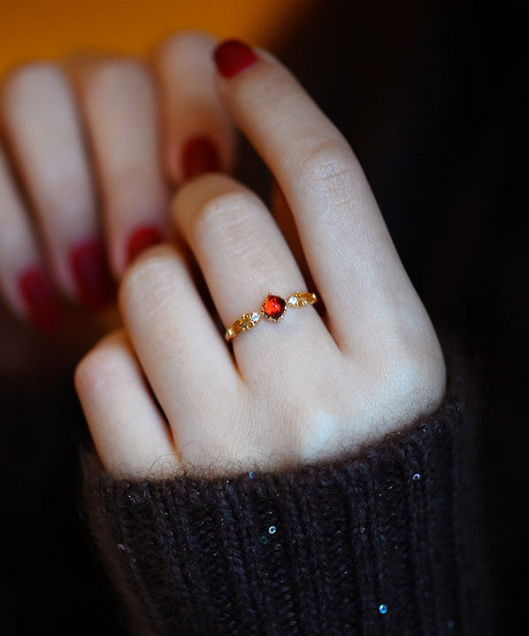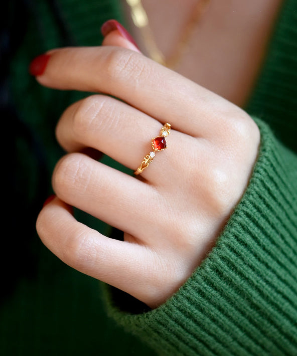 Handmade Red Garnet Zircon 14K Gold Rings