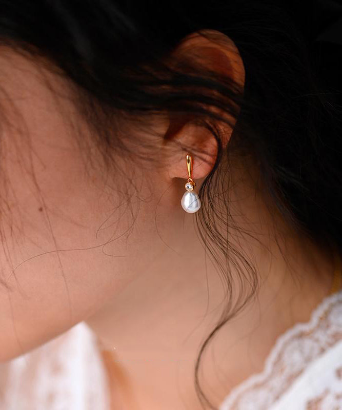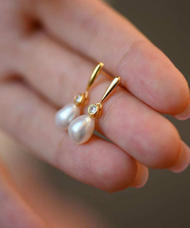 Light LuxurySmall Stone Pearl Zircon 14K Gold Stud Earrings
