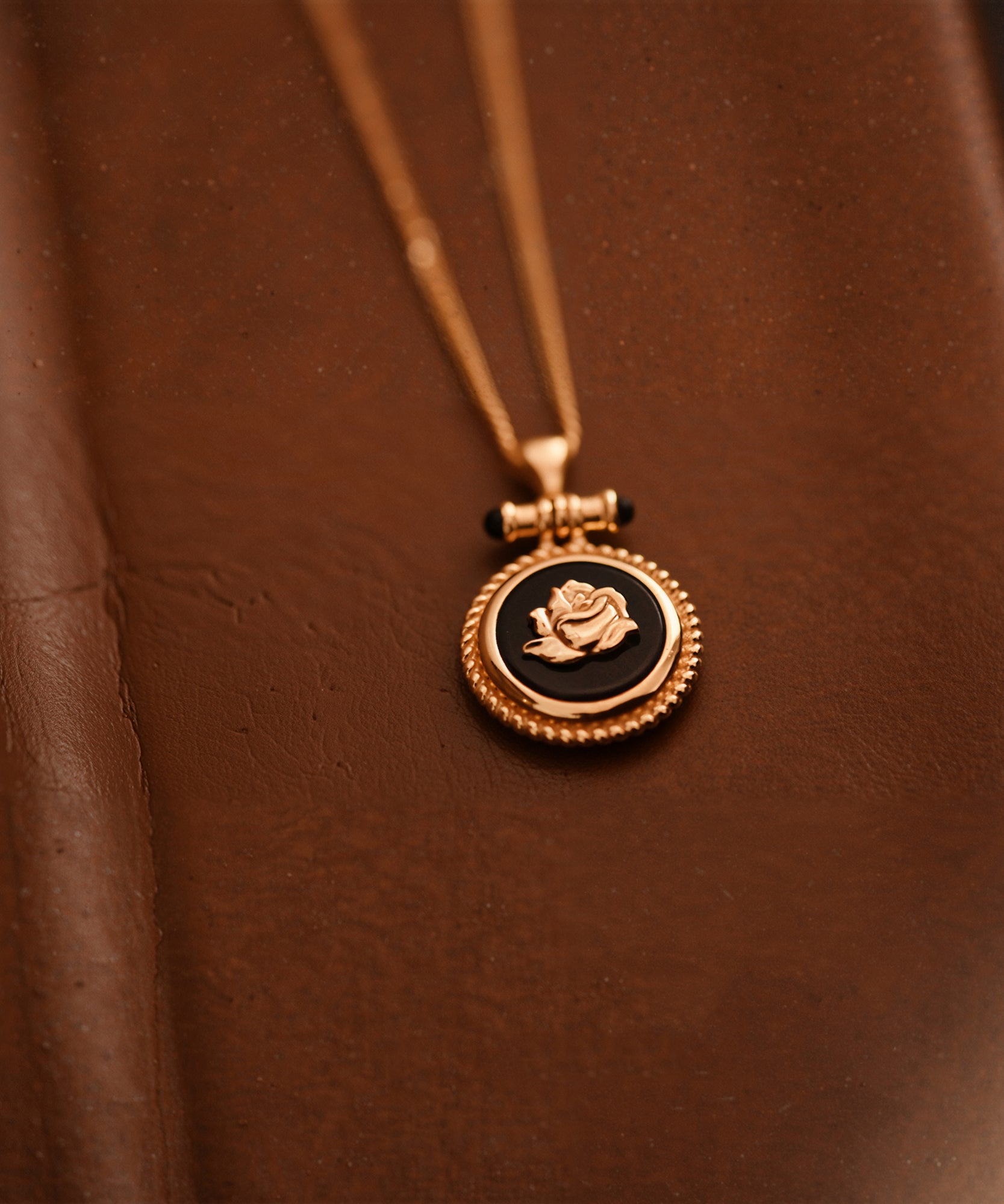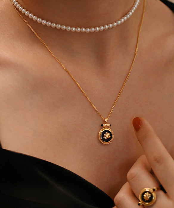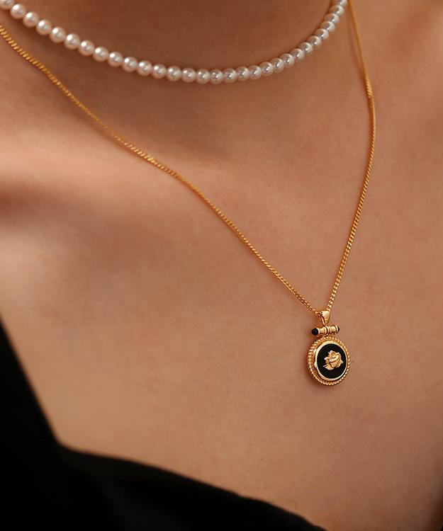New Black Onyx Roses Adjustable14K Gold Pendant Necklace
