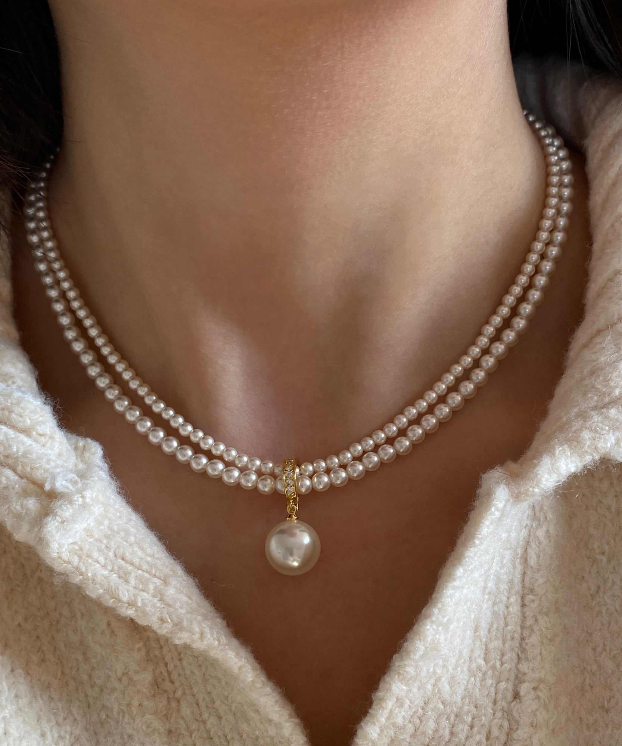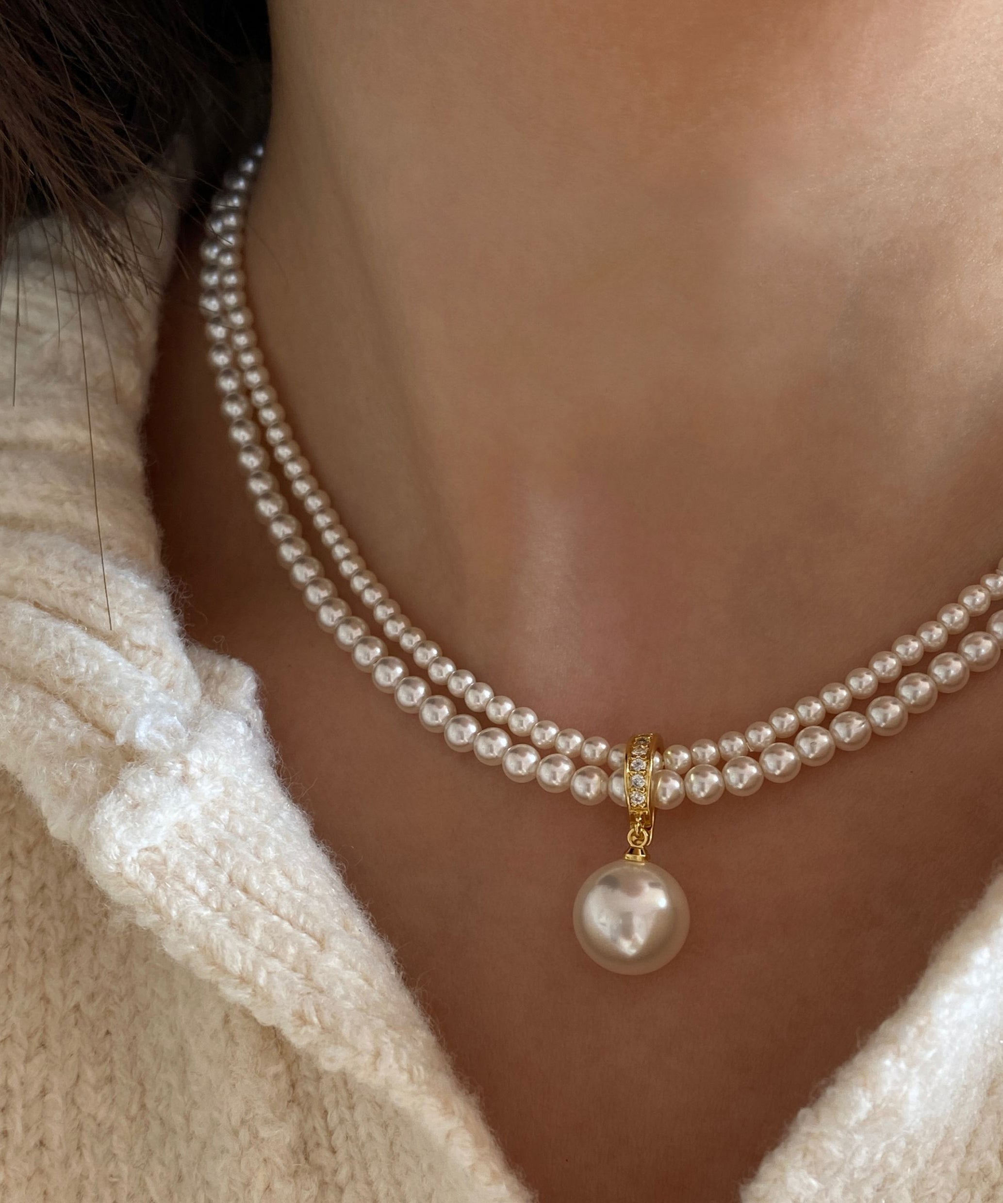New White Pearl Double Layered Adjustable 14K Gold Choker