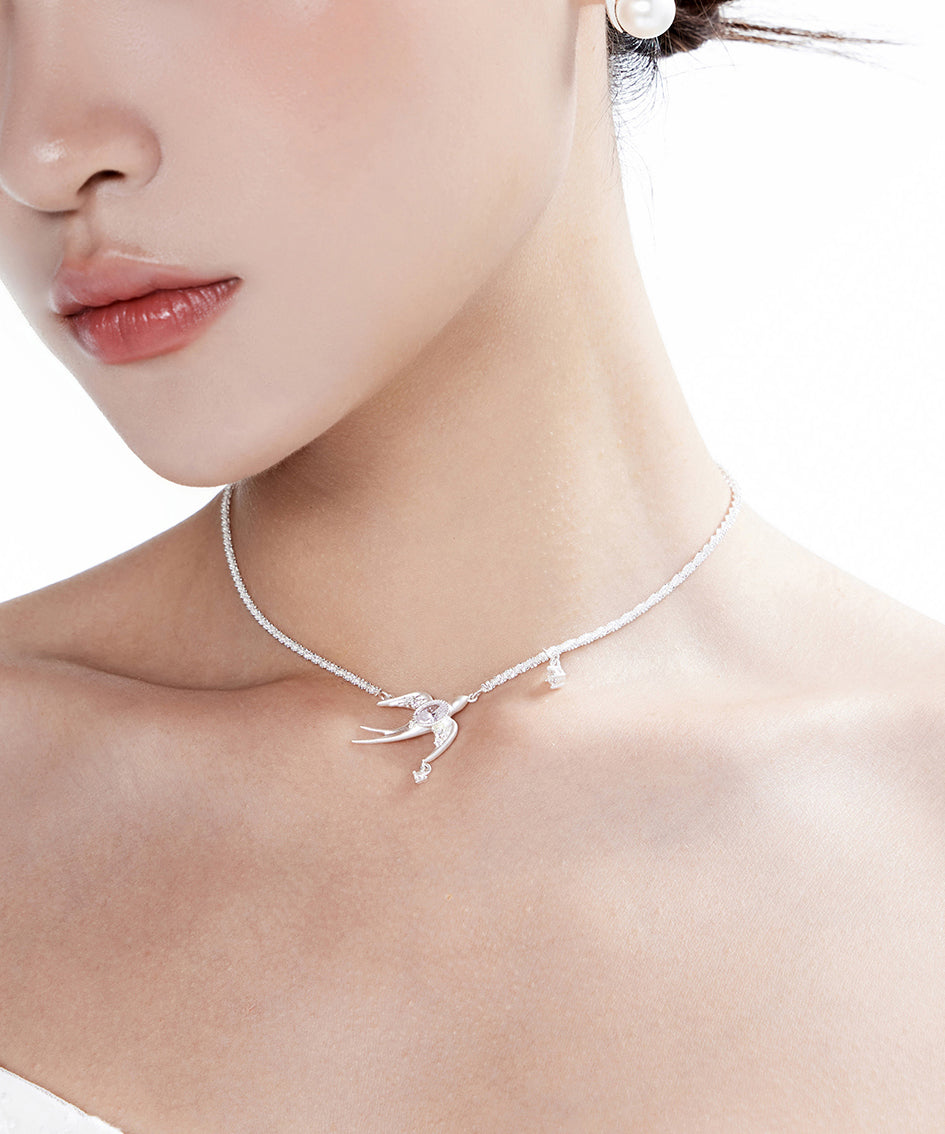 Original Design Chain With Bird Shaped Zircon Claw Set Diamond Silver Plated Choker
