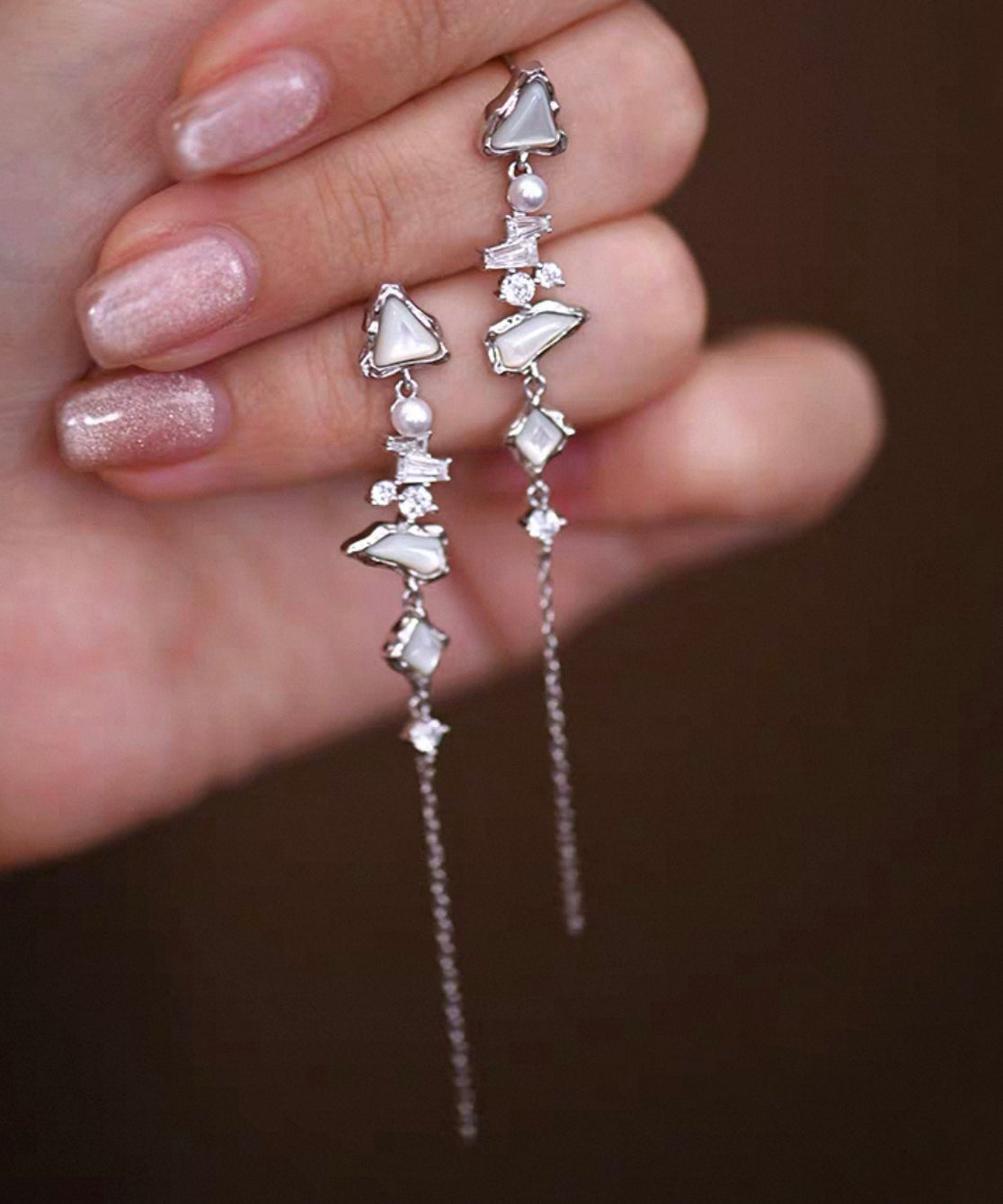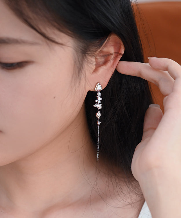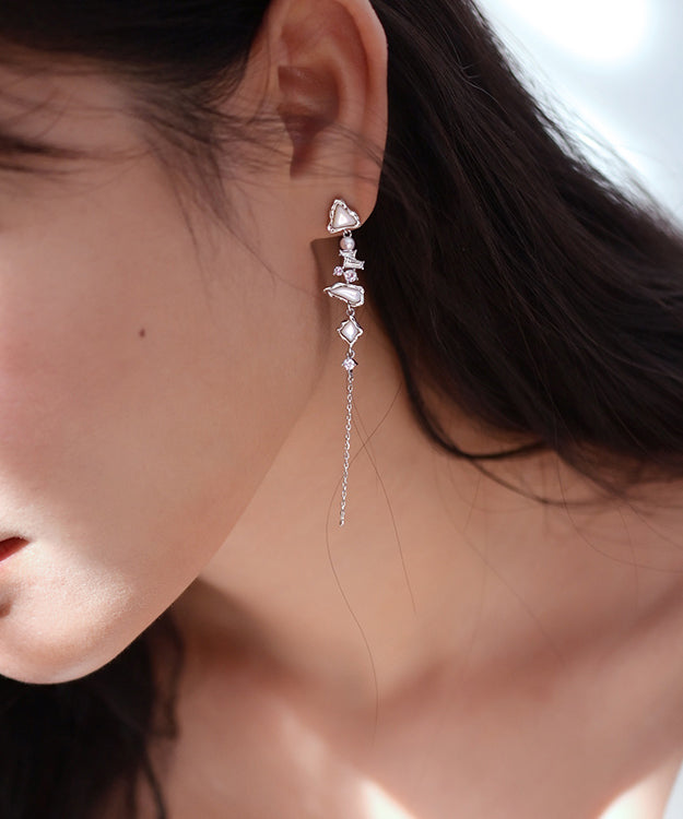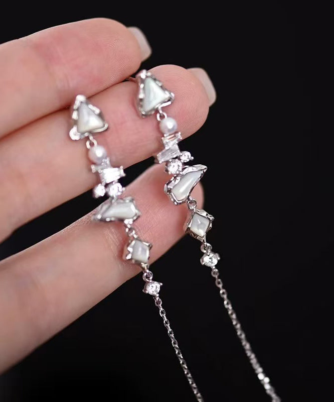 Stylish White Zircon Freshwater Pearl Mother Of Pearl Silver Drop Earrings