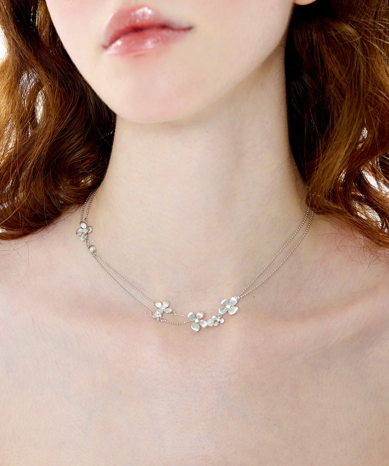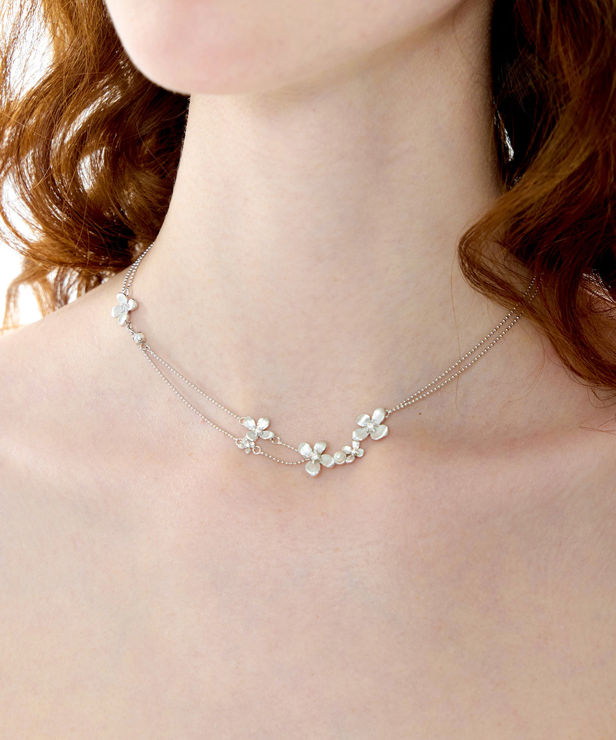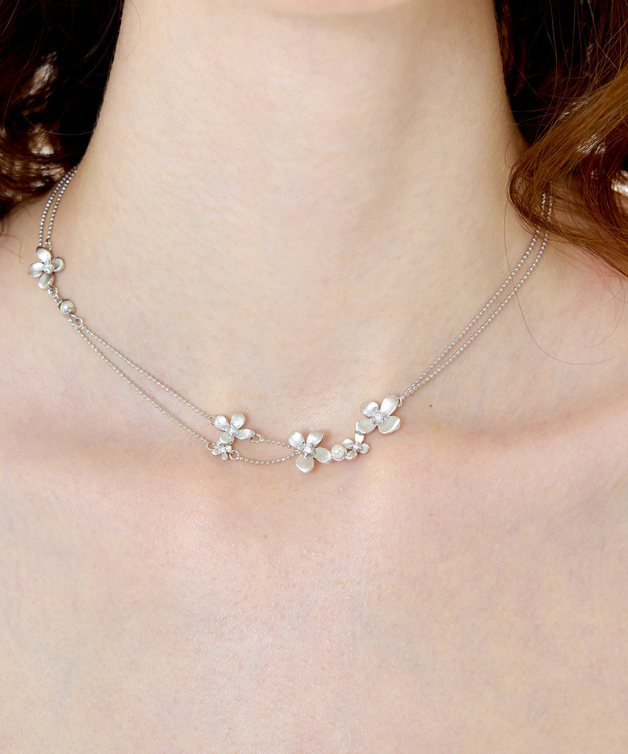 Women Silver Floral Double Layer Chain Copper Choker