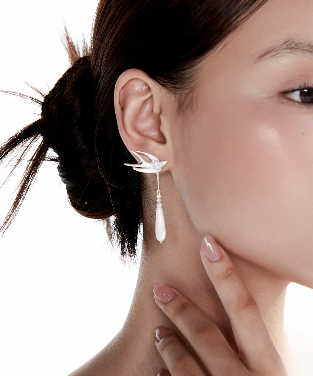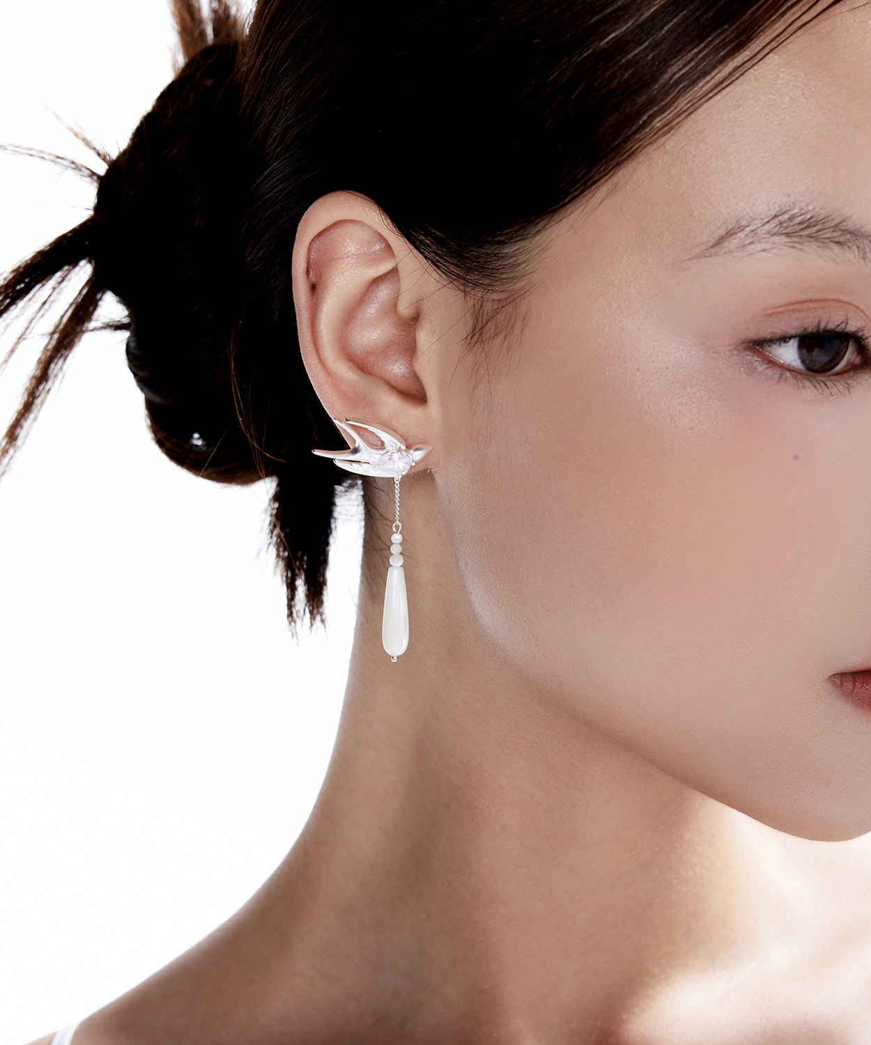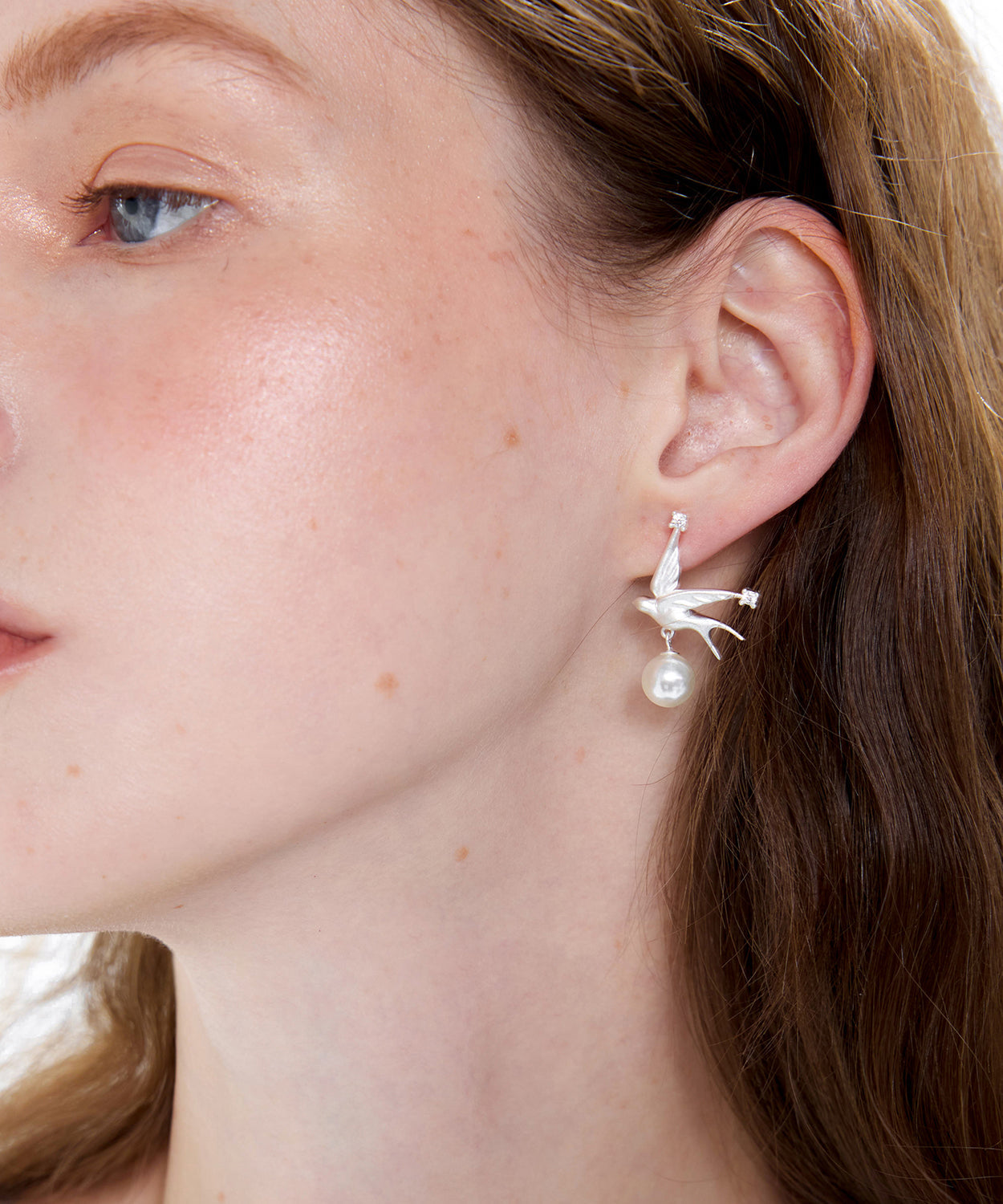 Art Silver Zircon Little Bird Pearl Silver Drop Earrings