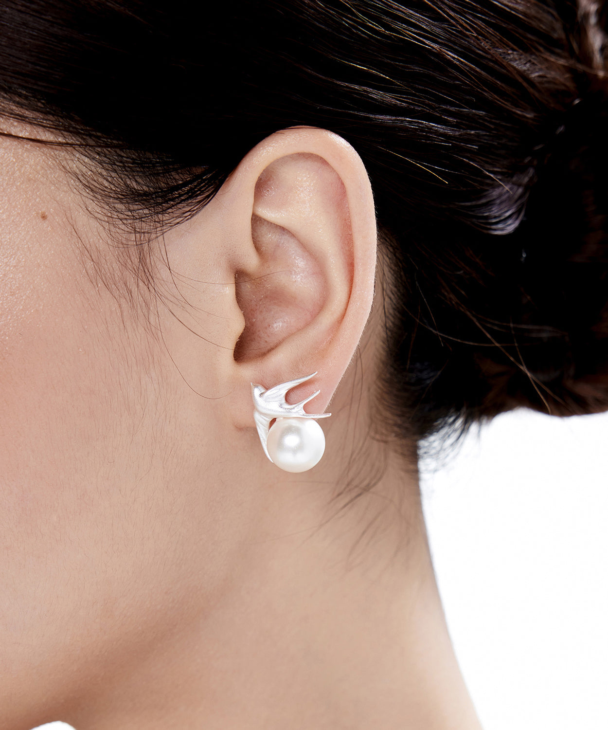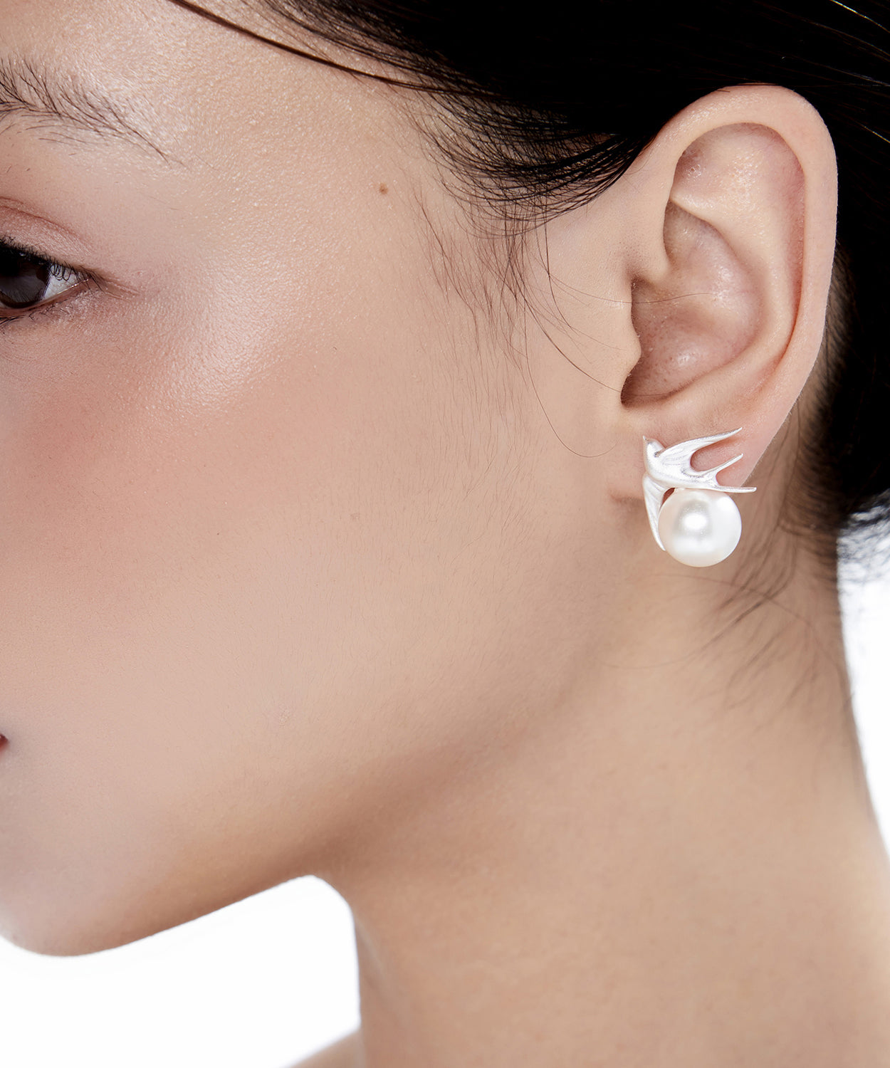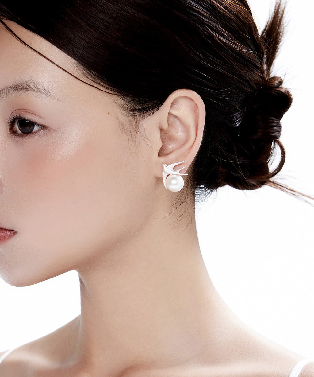 Art Silver Zircon Little Bird Pearl Silver Drop Earrings
