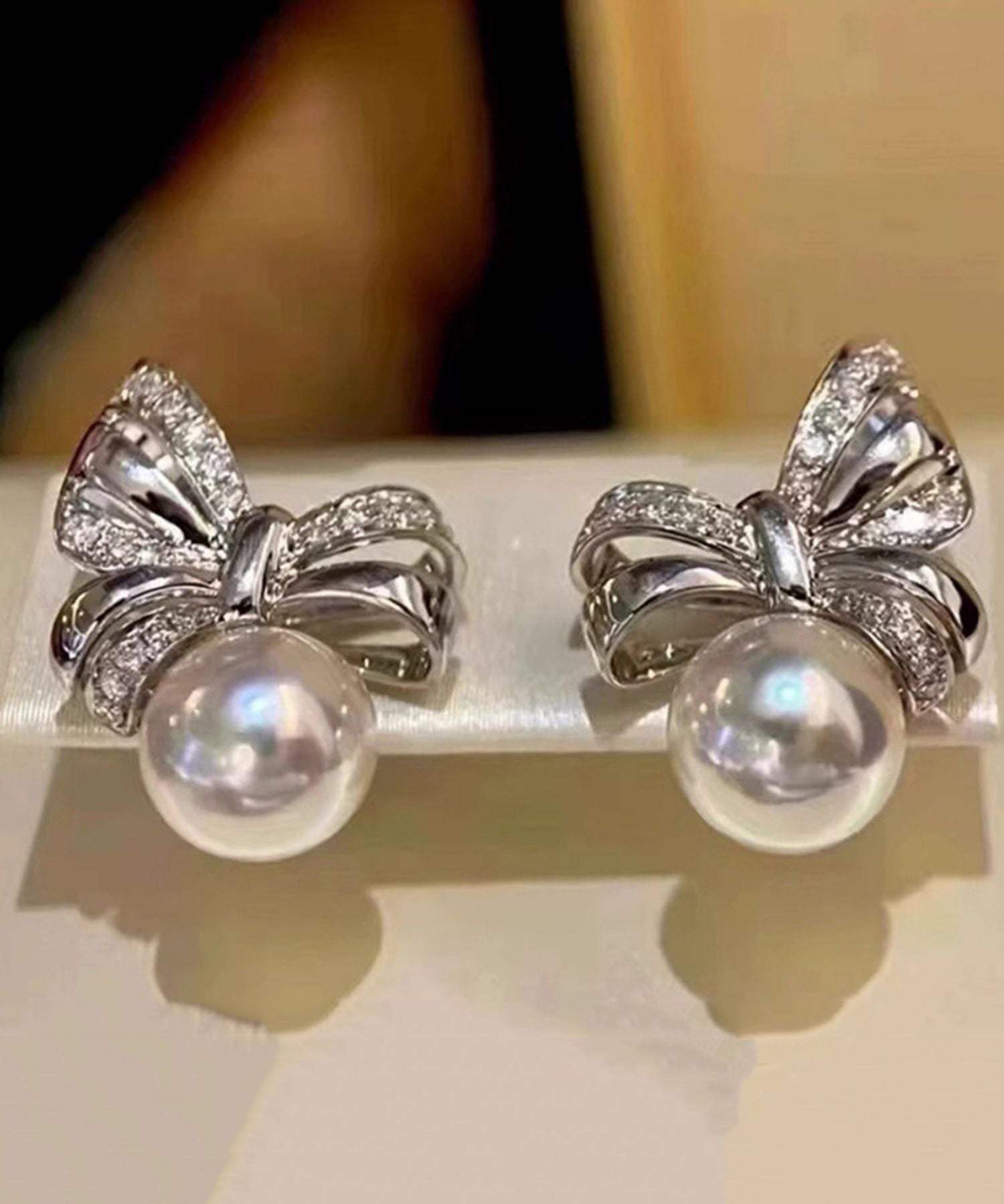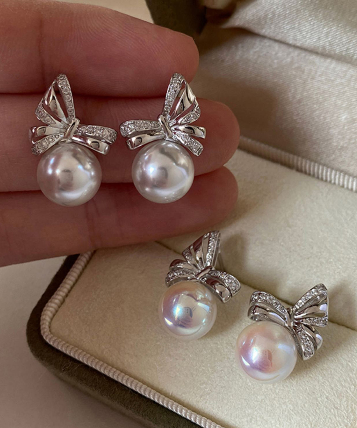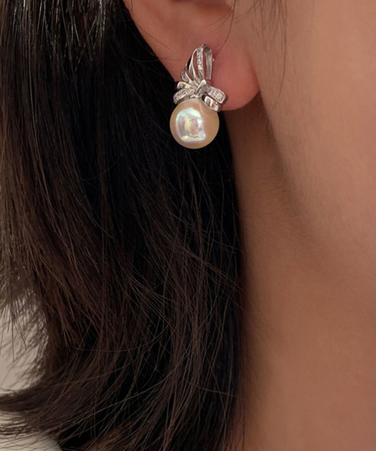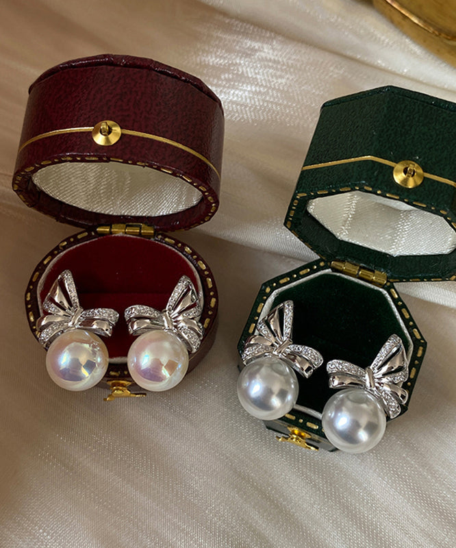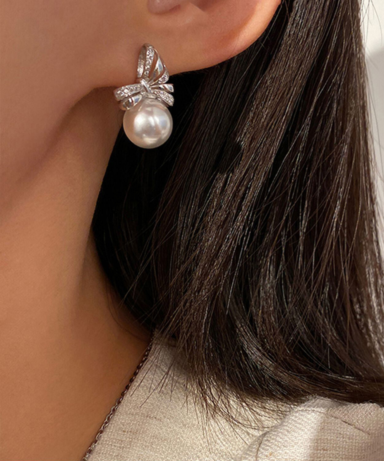 Fashion Silver Zircon Bow Pearl Silver Drop Earrings