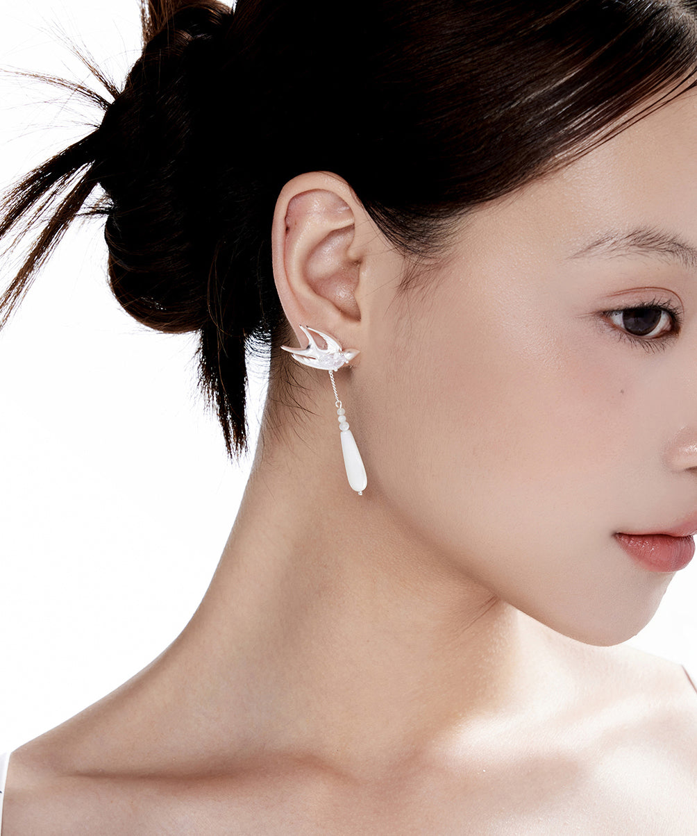 Boutique Silver Little Bird Water Droplet Silver Drop Earrings