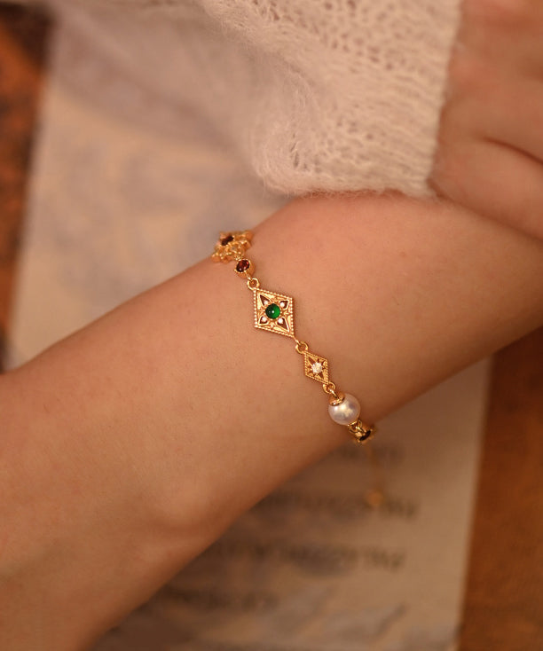 Chic Geometric Pearl Gem Stone Adjustable Gold Plated Bracelet