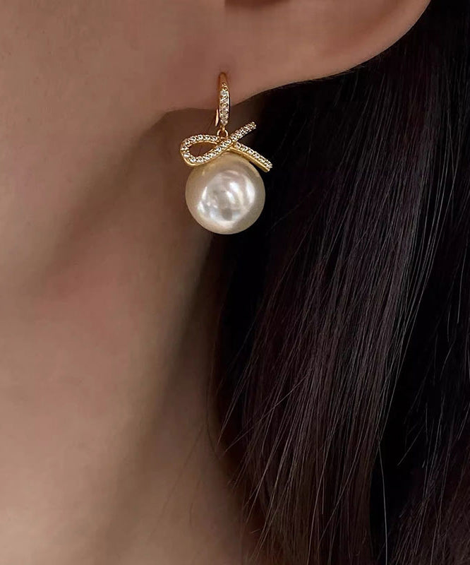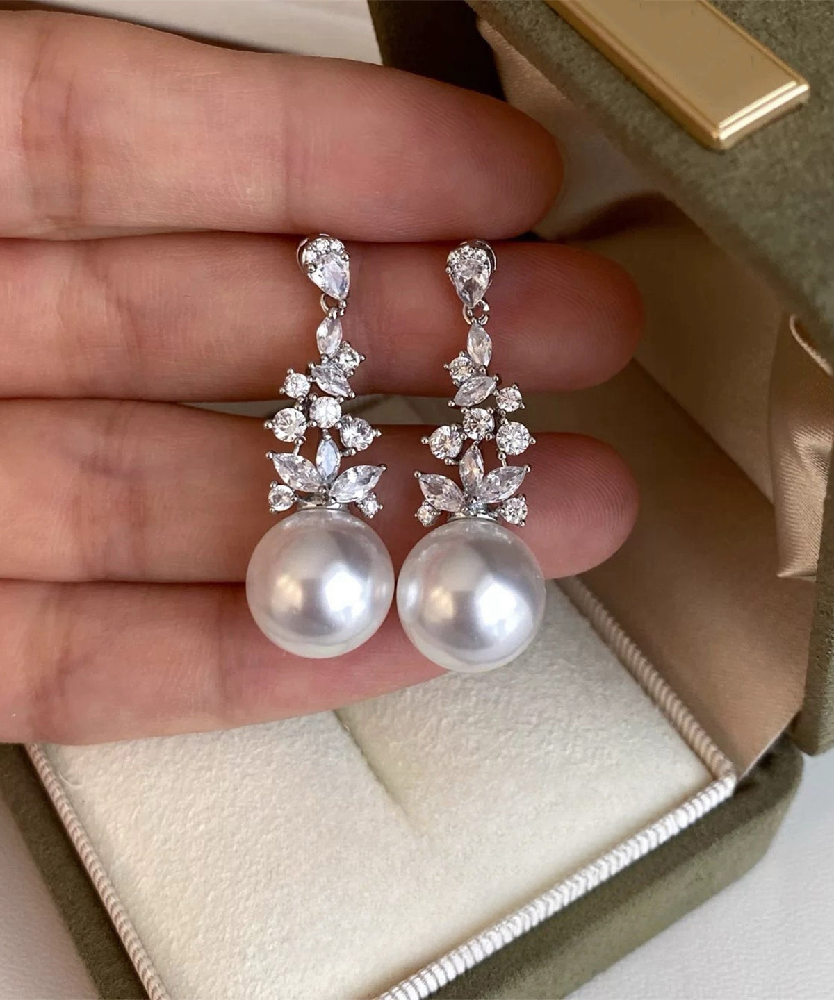 Stylish White Shiny Zircon Pearl Drop Earrings