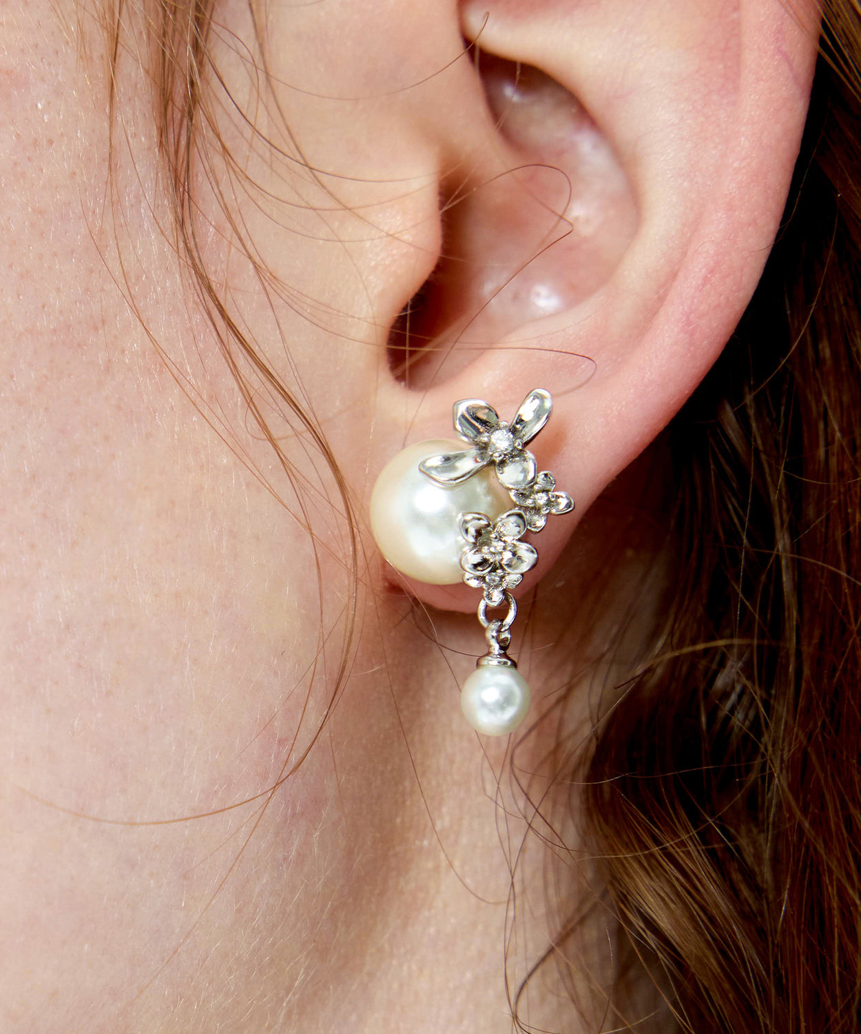 Elegant Pearl Bow Silver Long Drop Earrings Earrings