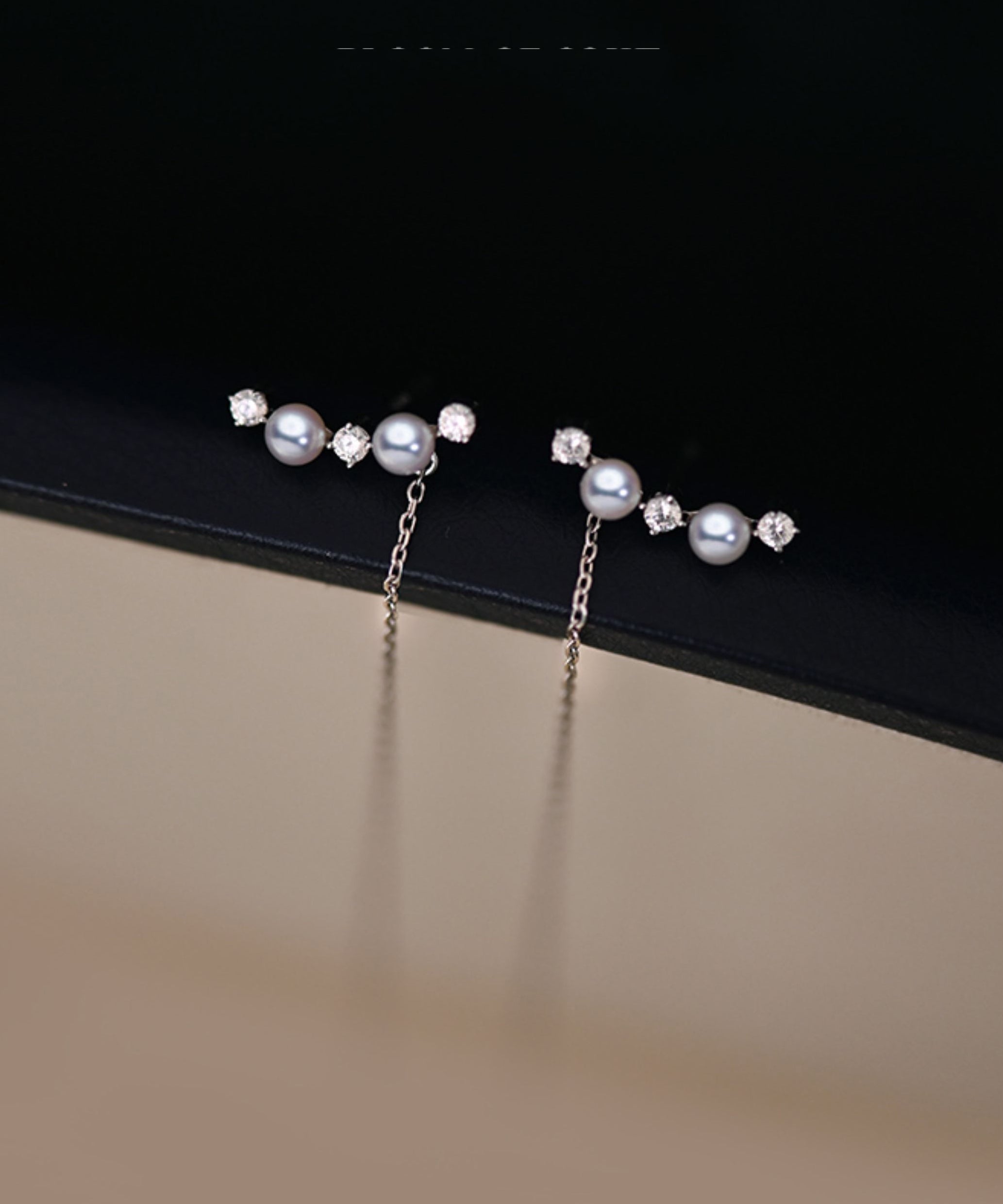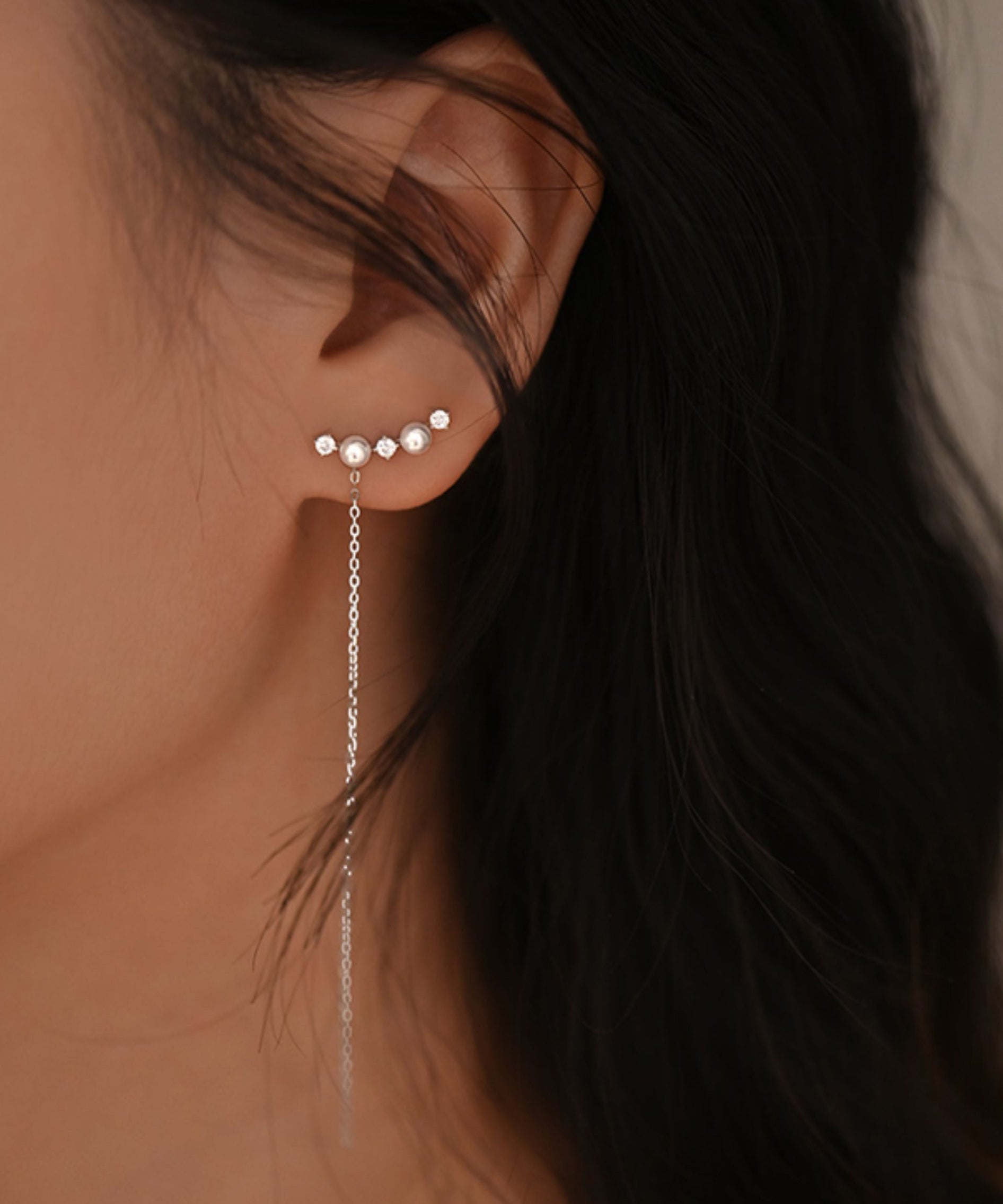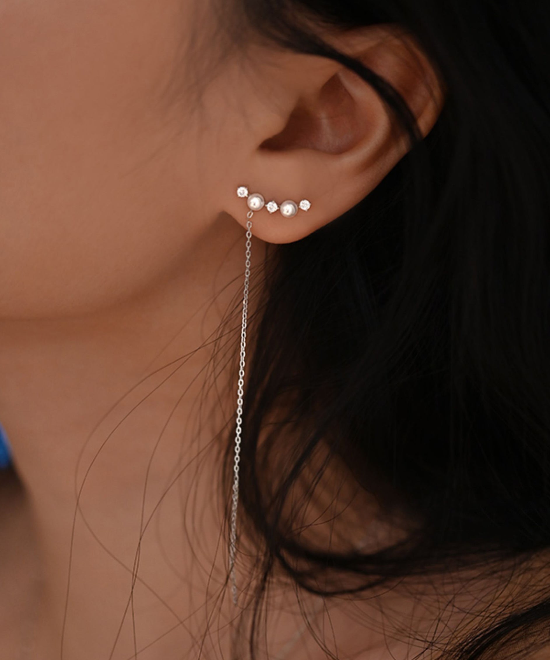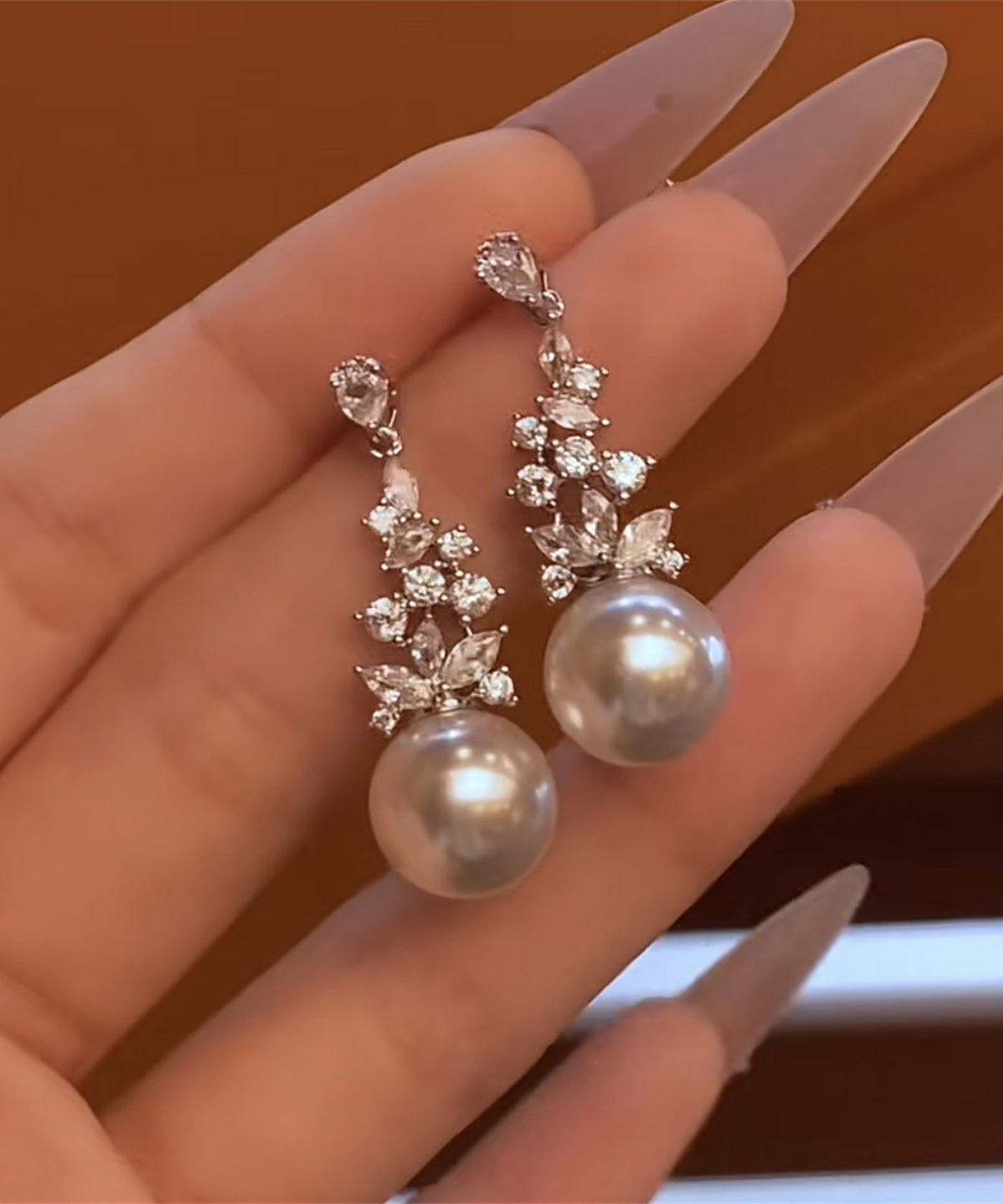 New Silver Tassel Pearl Zircon Silver Drop Earrings