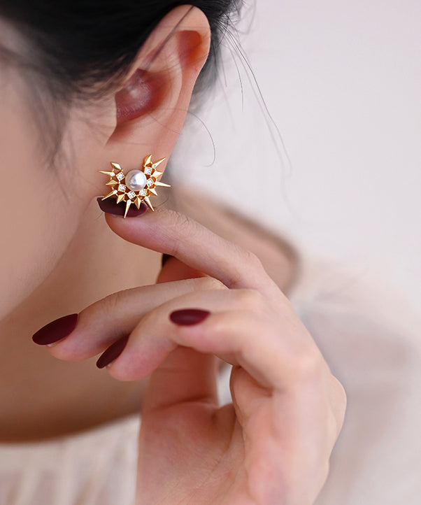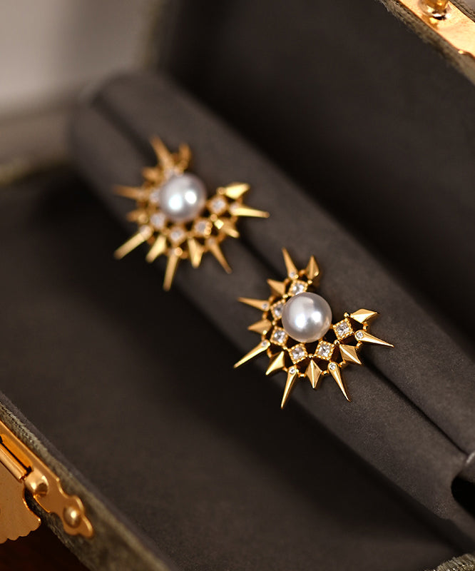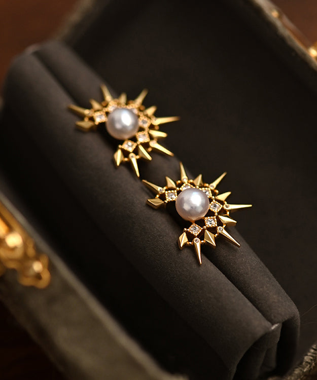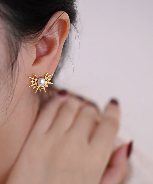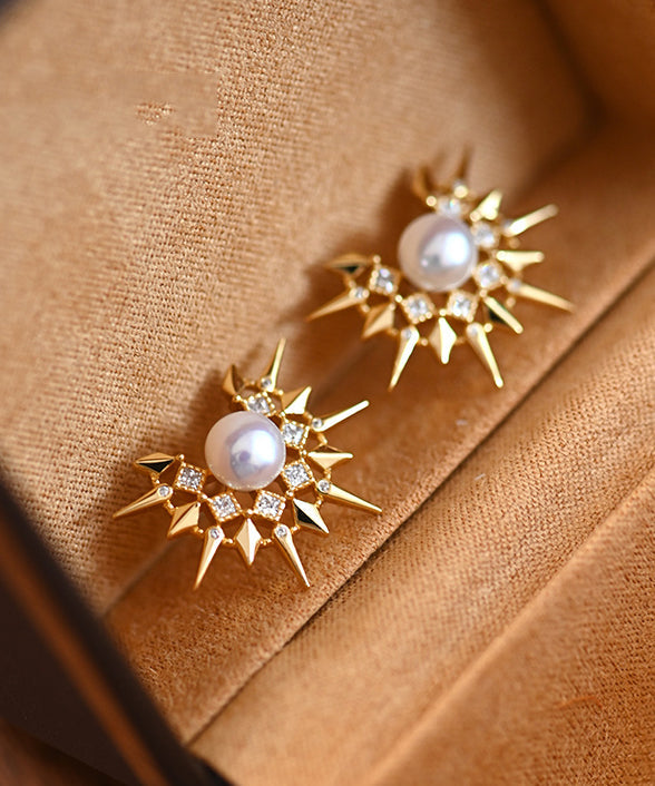 Original Design Sunflower Pearl Gold Plated Stud Earrings