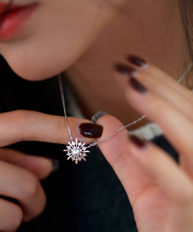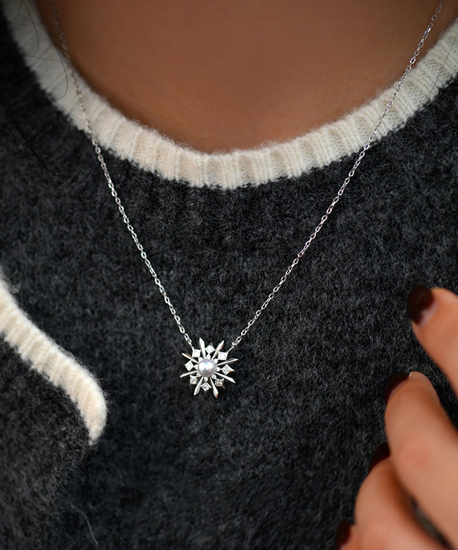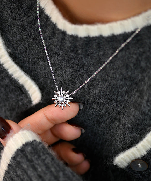 Romantic Christmas Snowflakes Pearl Adjustable Silver Pendant Necklace