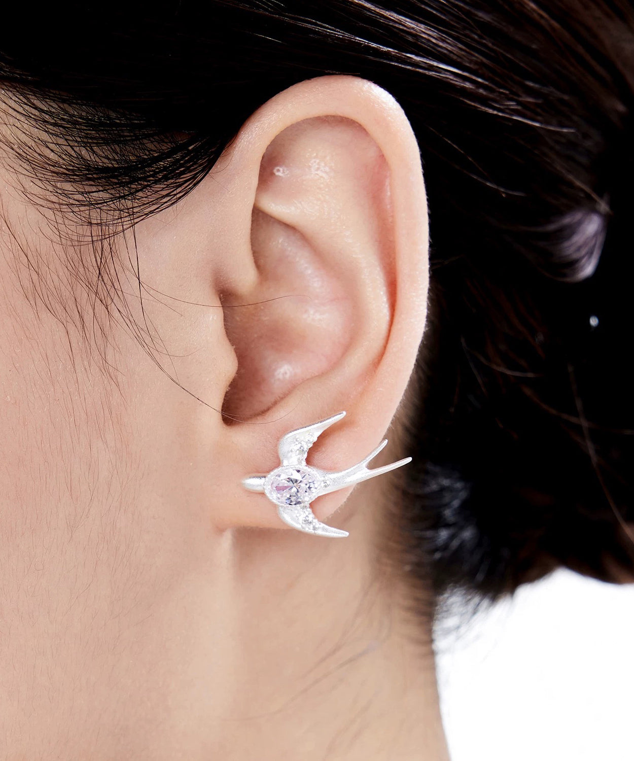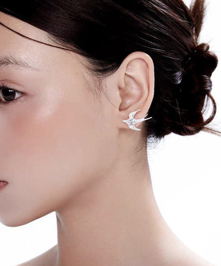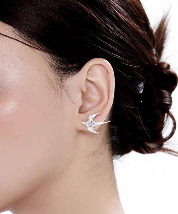 Unique Silver Asymmetric Zircon Little Bird Silver Stud Earrings