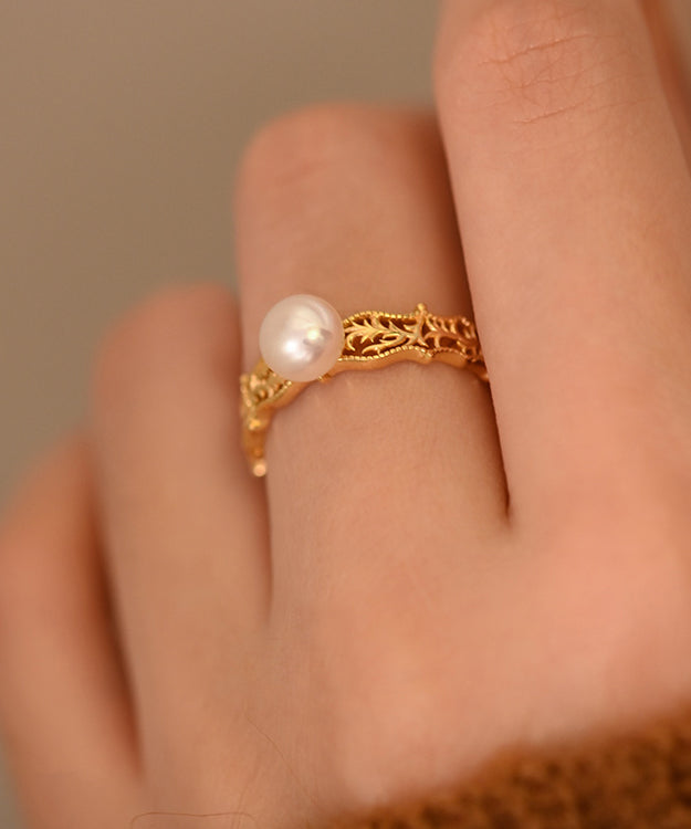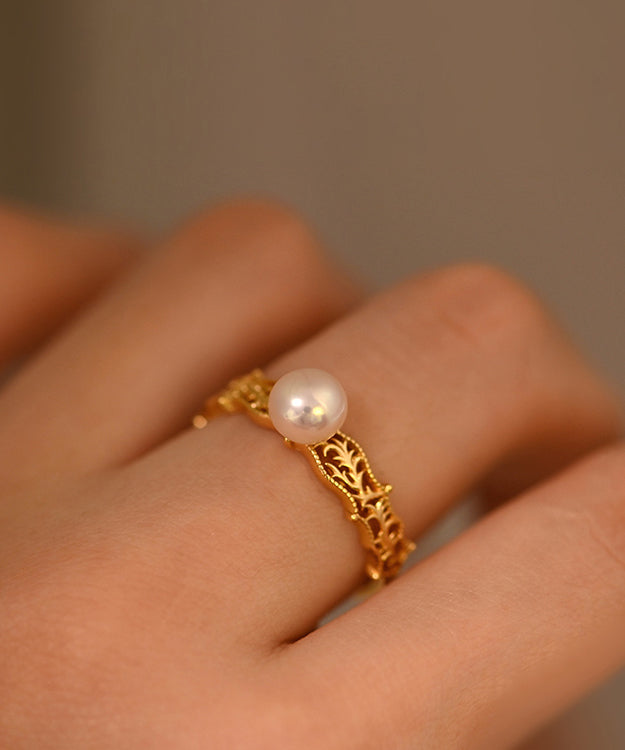 Vintage Pearl Hollow Out Adjustable Gold Plated Rings