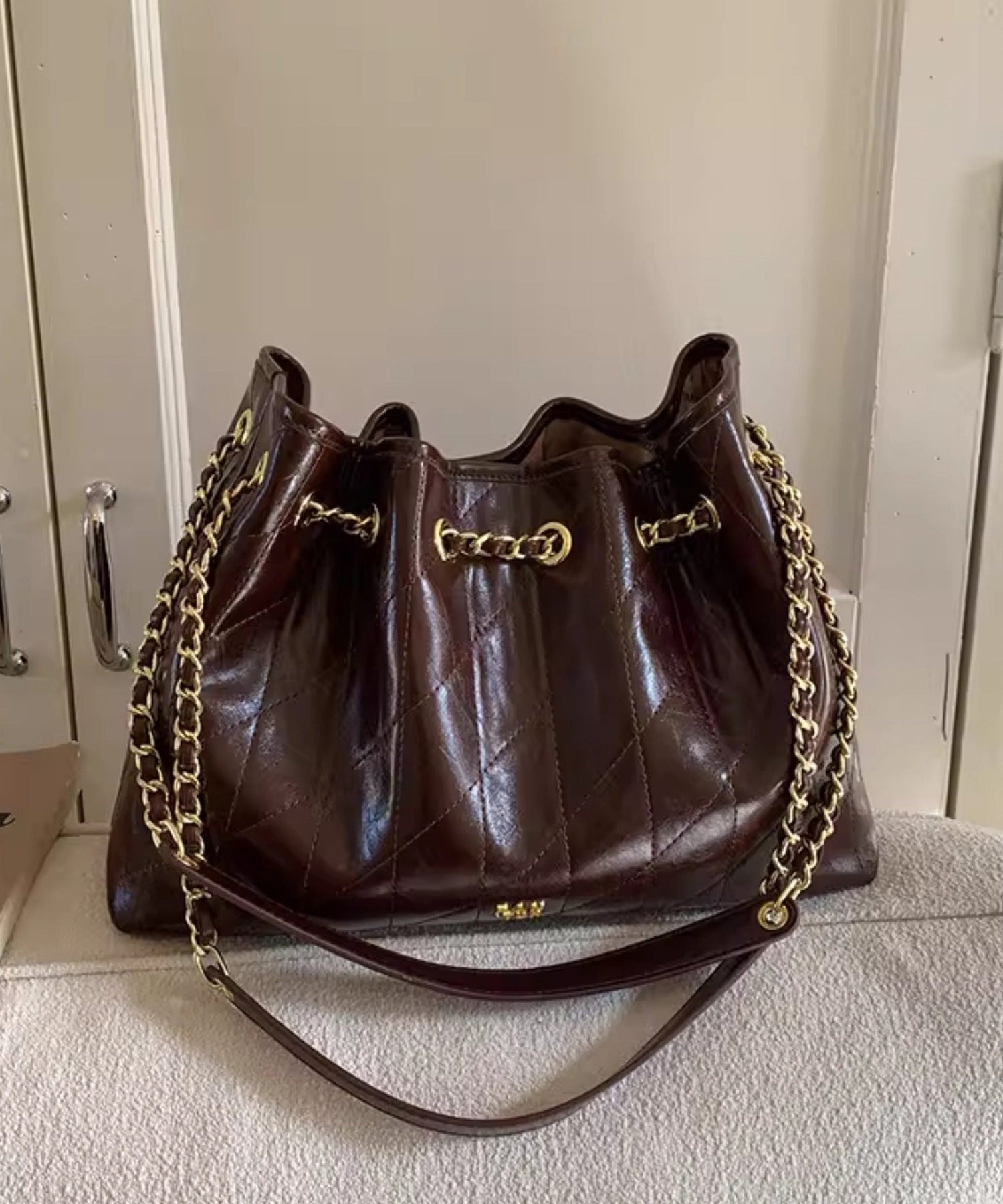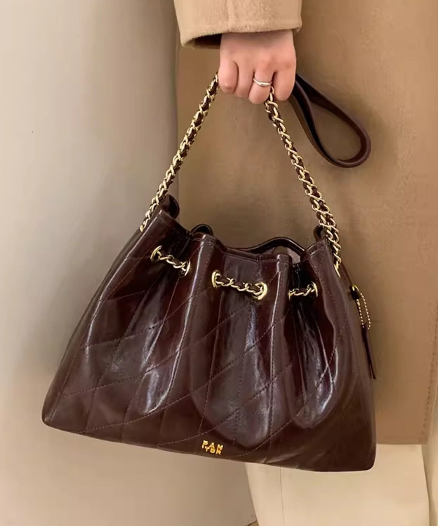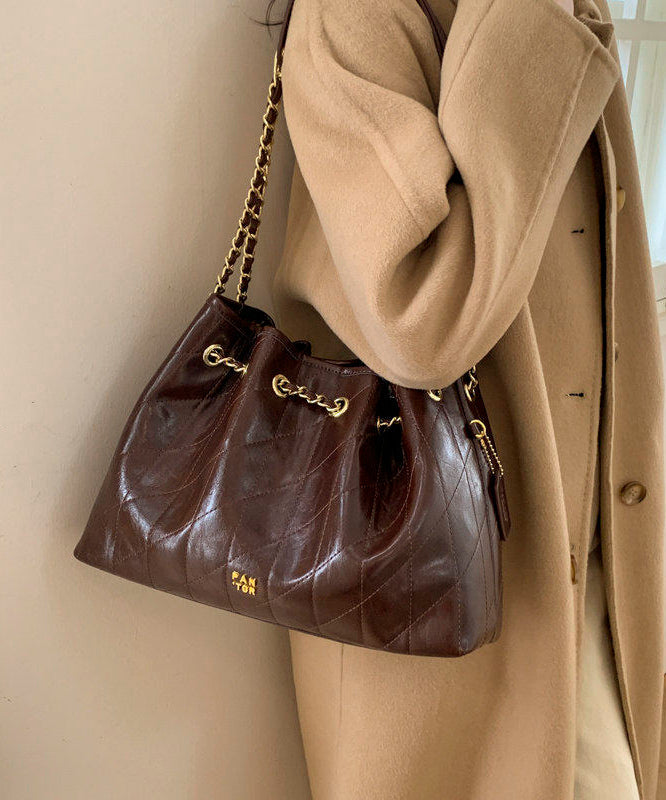 Chic Chocolate Plaid Large Capacity Faux Leather Flap Bag