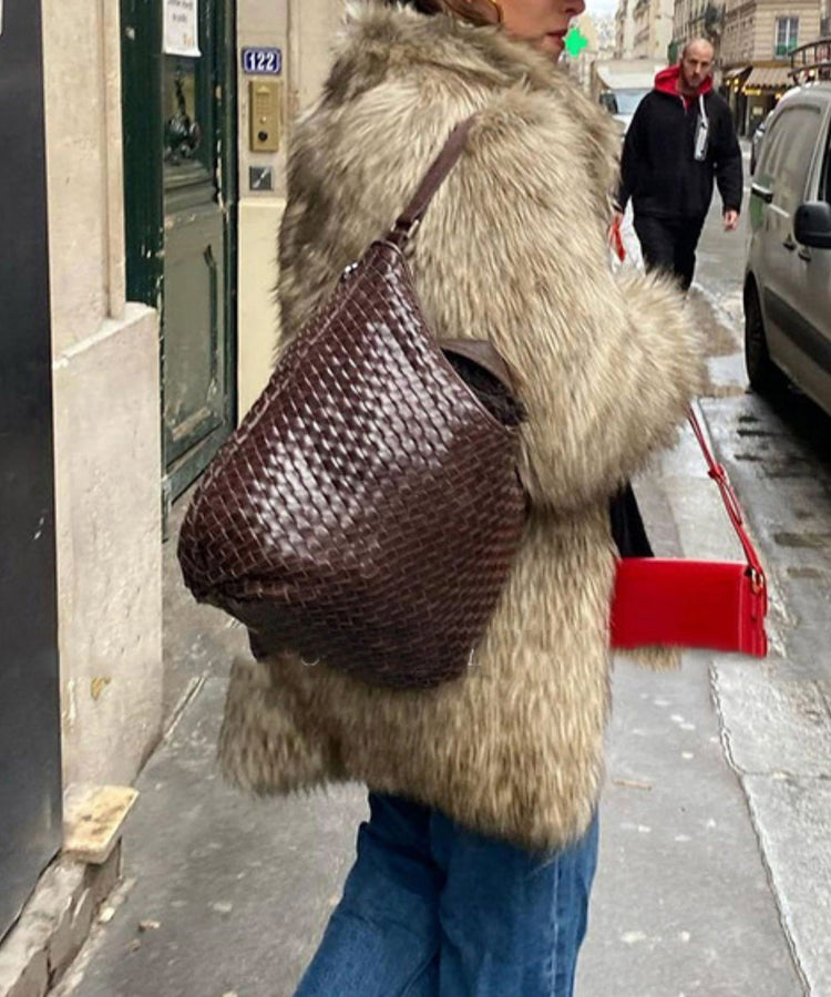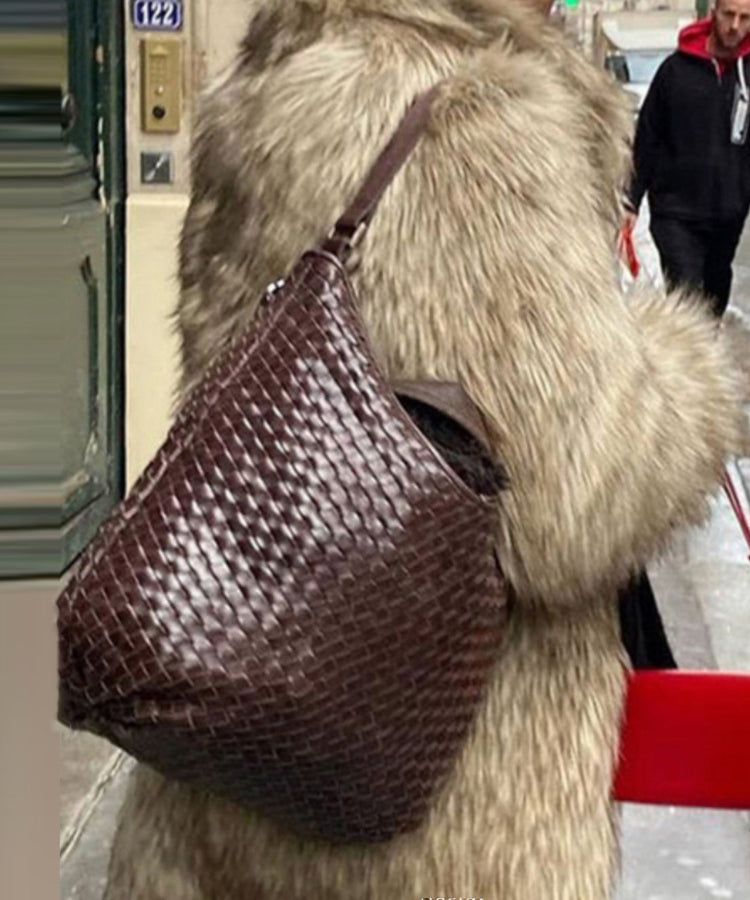 Classy Brown Weave Design Large Capacity Faux Leather Women Handbag