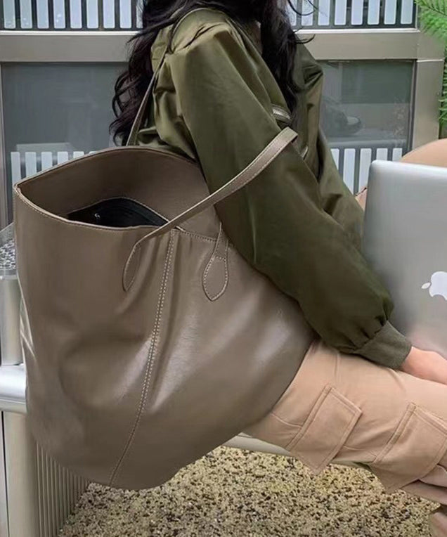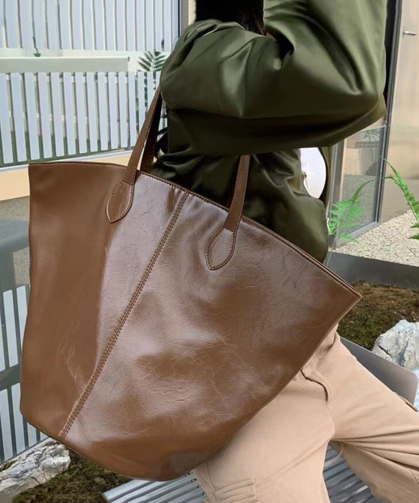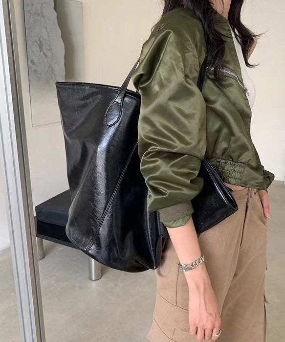 Stylish Black Large Capacity Solid Durable Faux Leather Bucket Bag