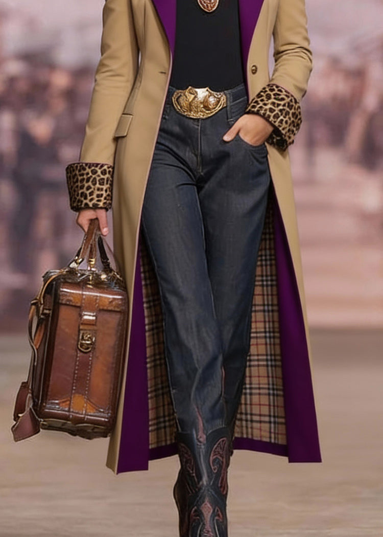Loose Khaki Peter Pan Collar Pockets Cotton Trench Spring