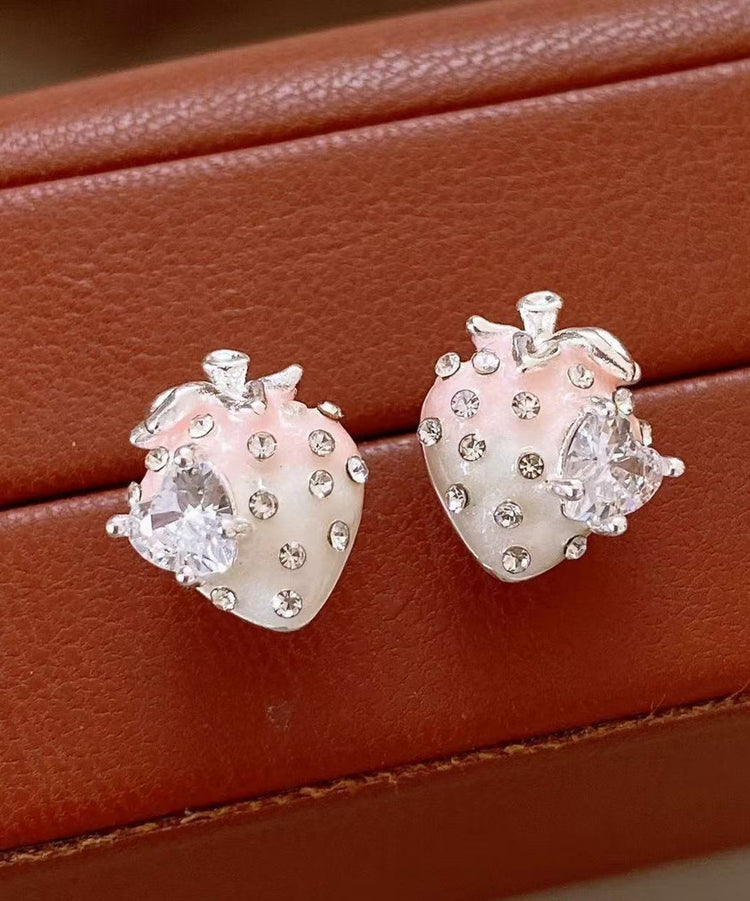 Gradient Color Pink Alloy Zircon Strawberry Stud Earrings