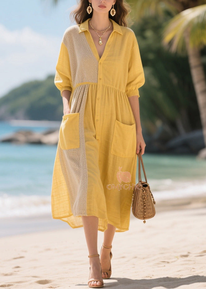 Boho Yellow Oversized Patchwork Cotton Dresses Summer