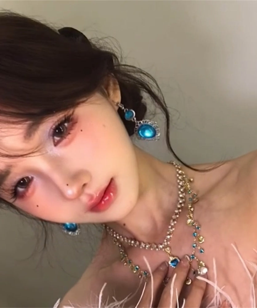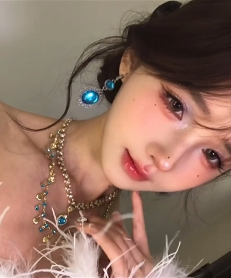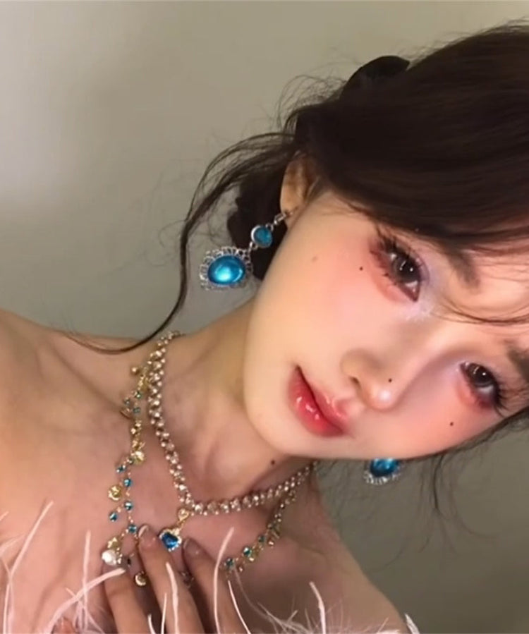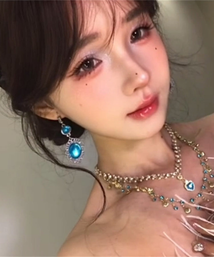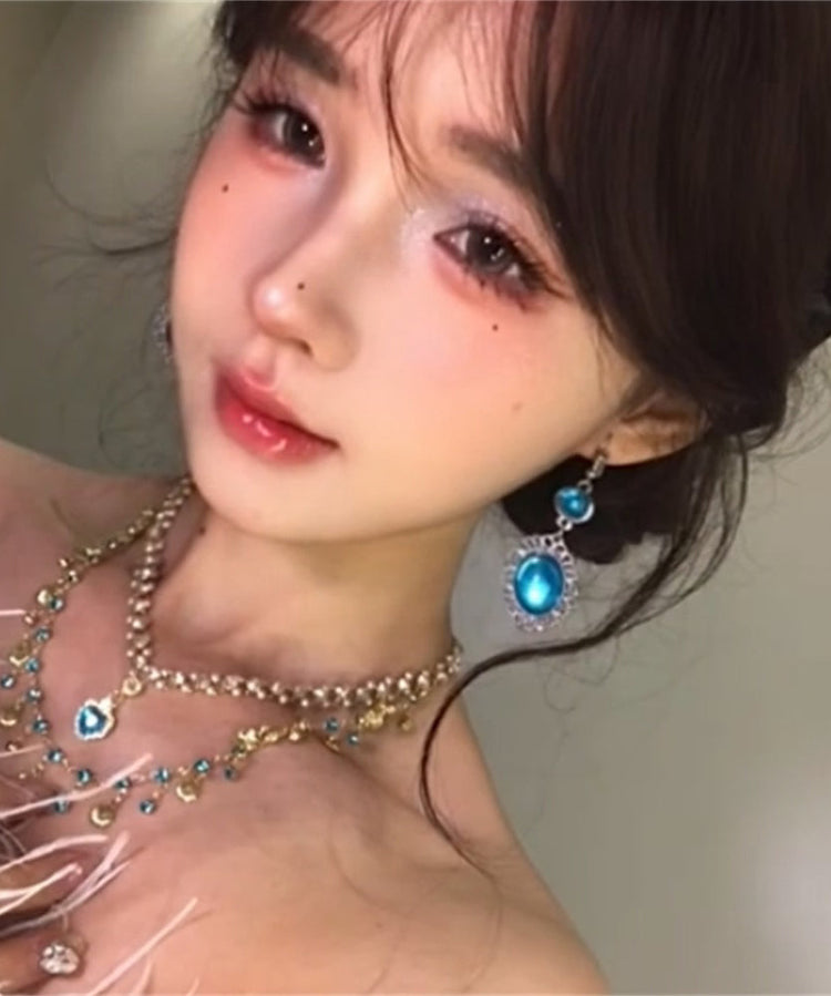 Bohemian Blue Sterling Silver Zircon Hollow Out Drop Earrings