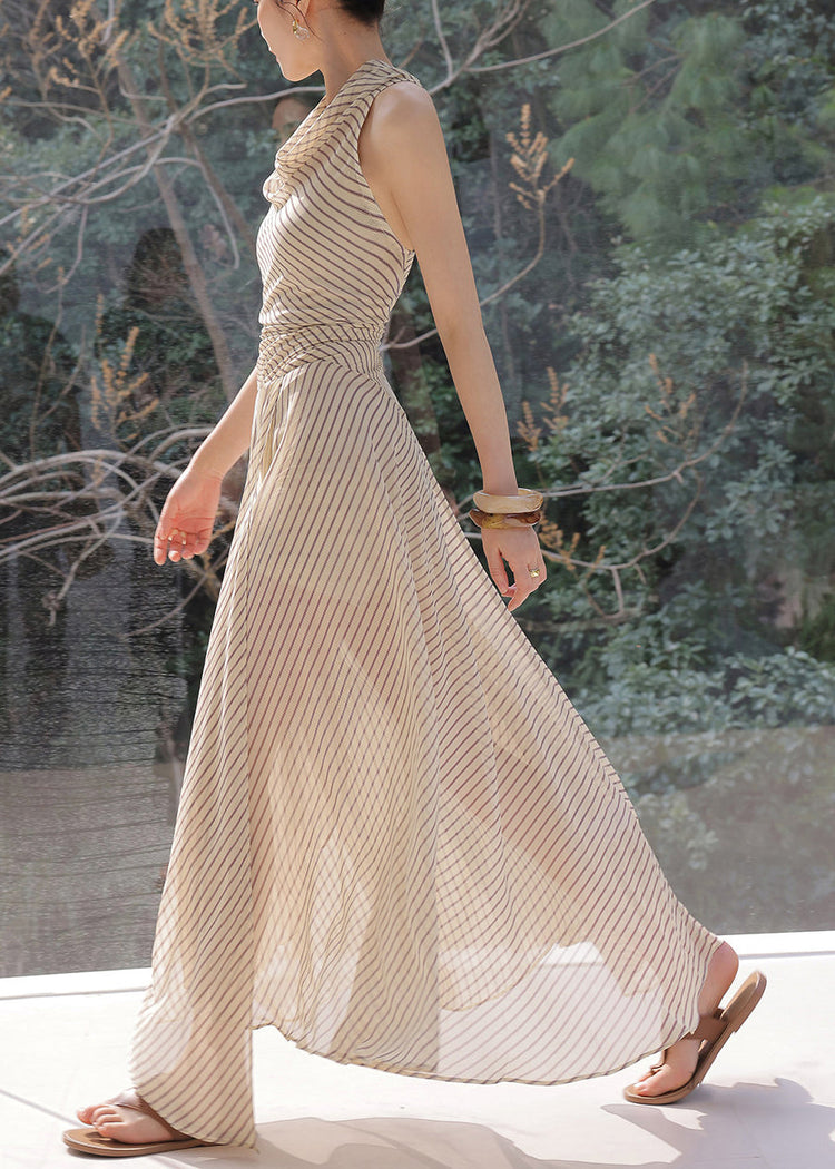 Fitted Striped Flattering Holiday Maxi Dress Sleeveless