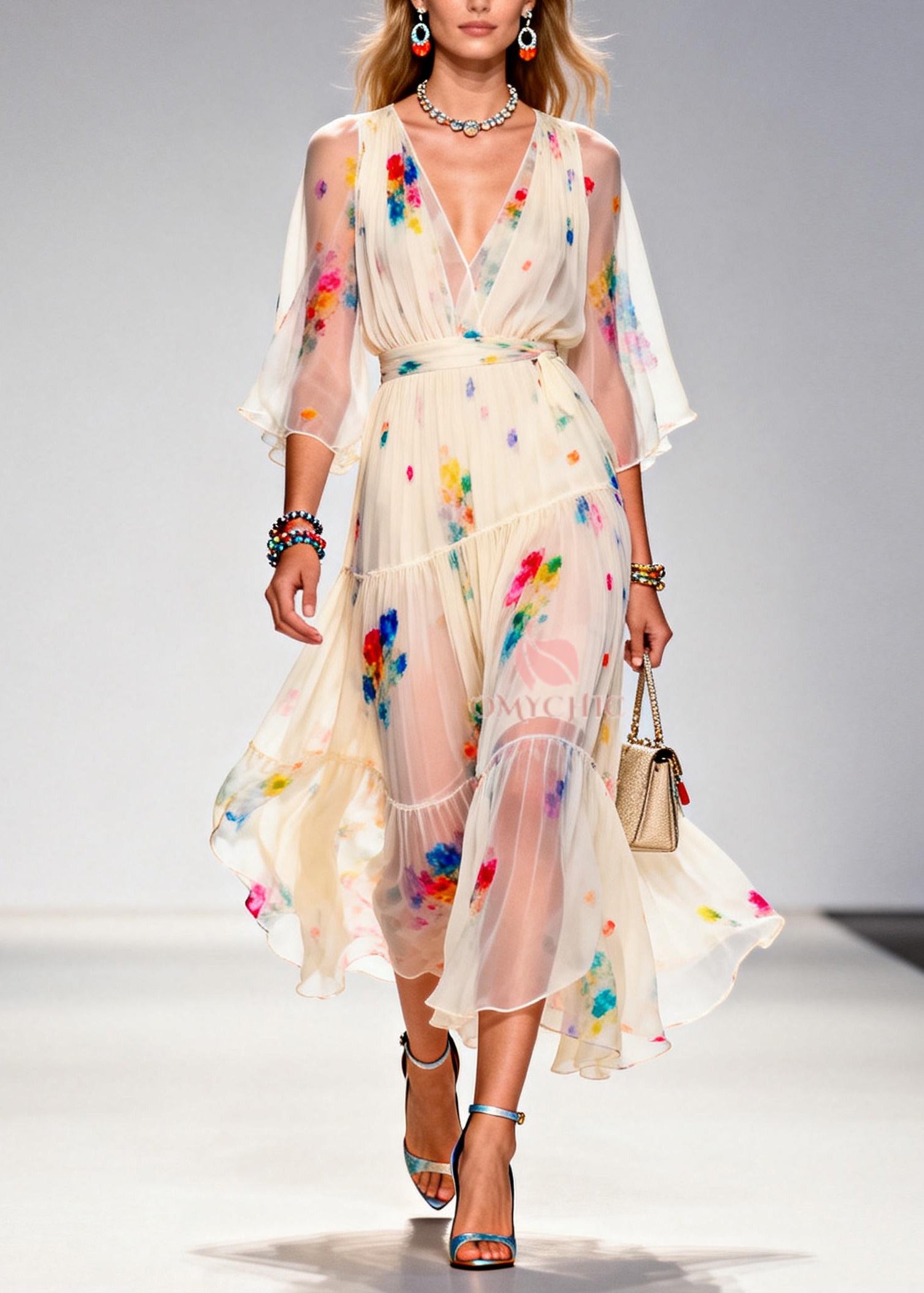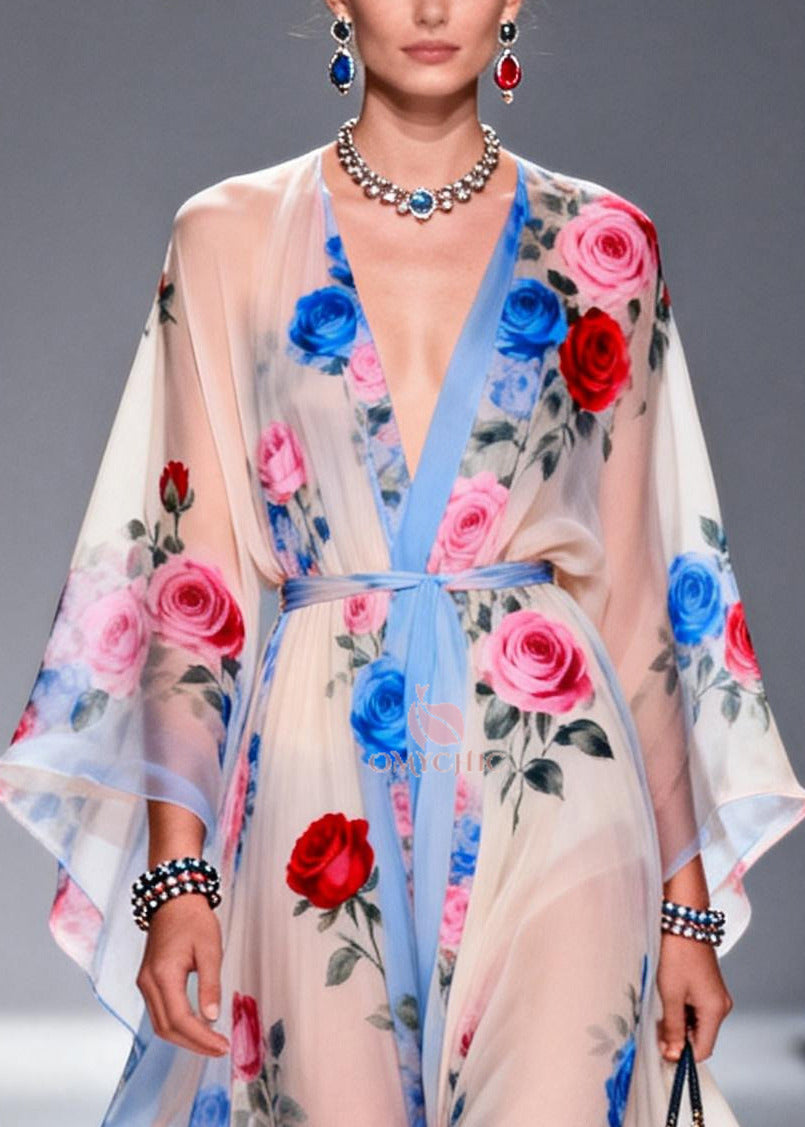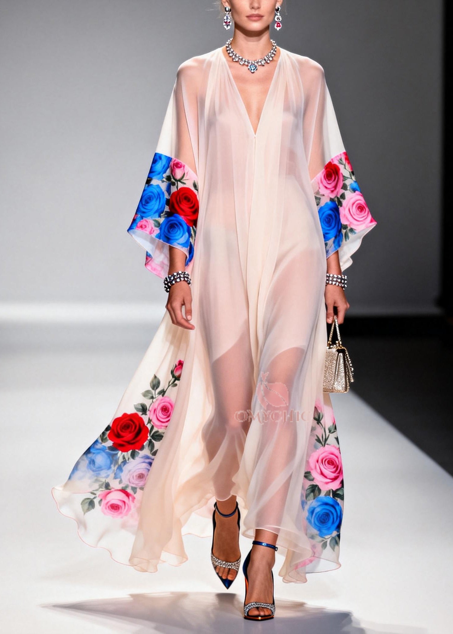 Rose Draping Chiffon Beach Dress Oversized Summer