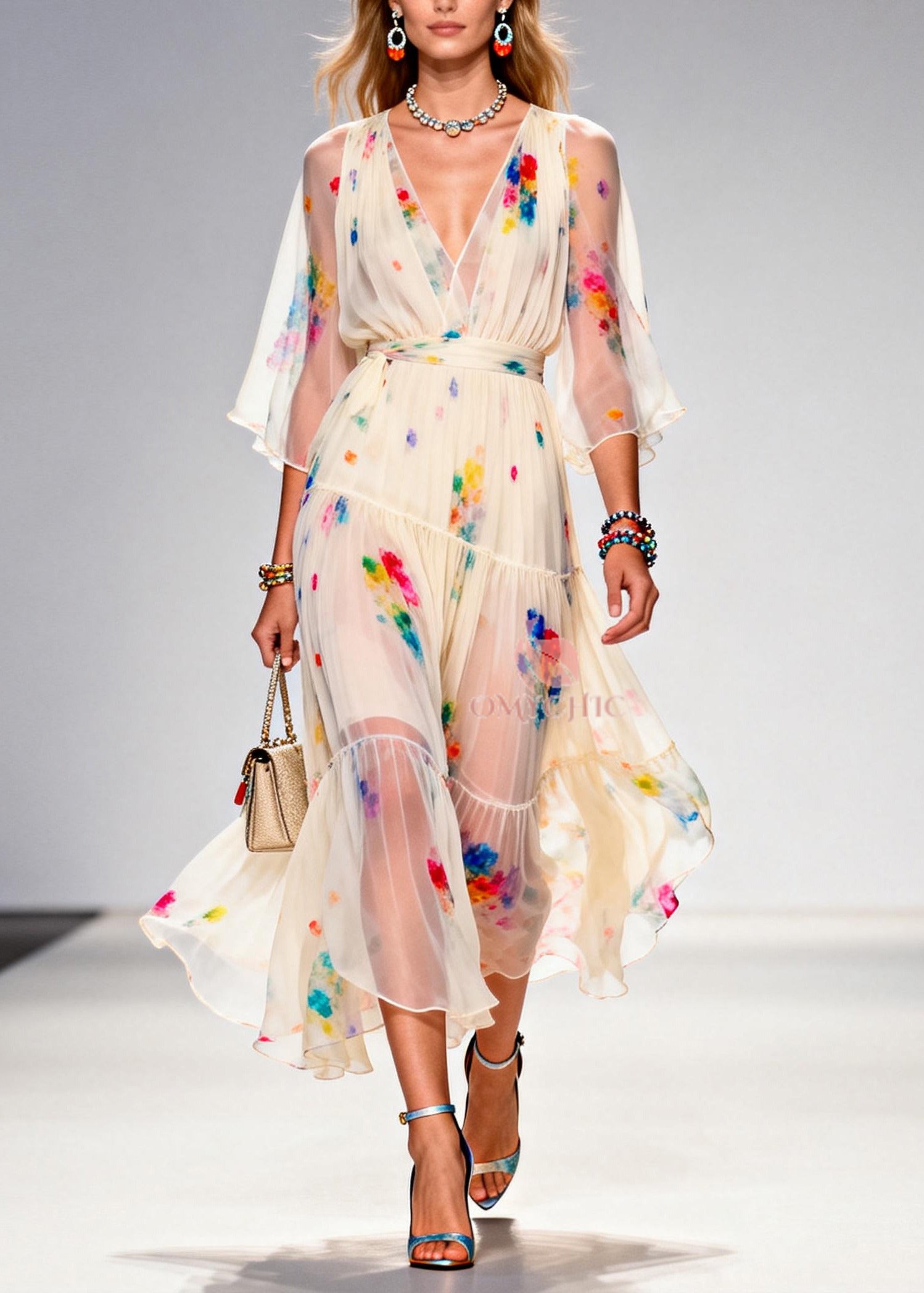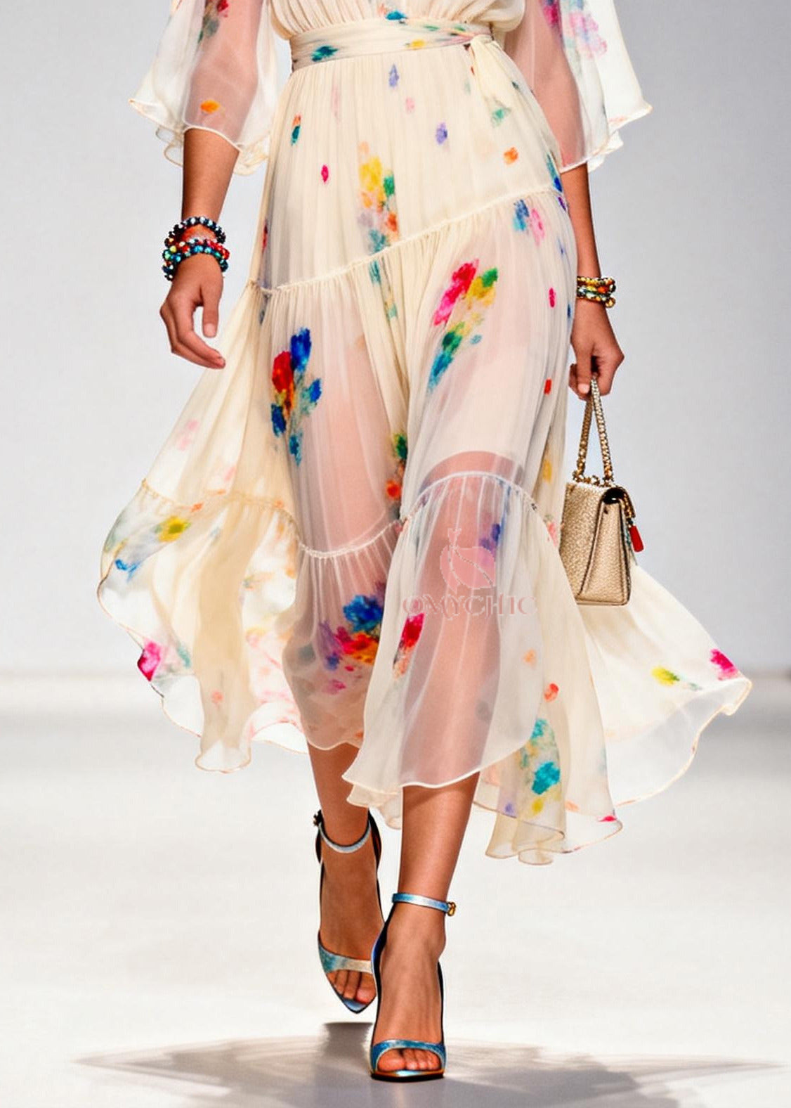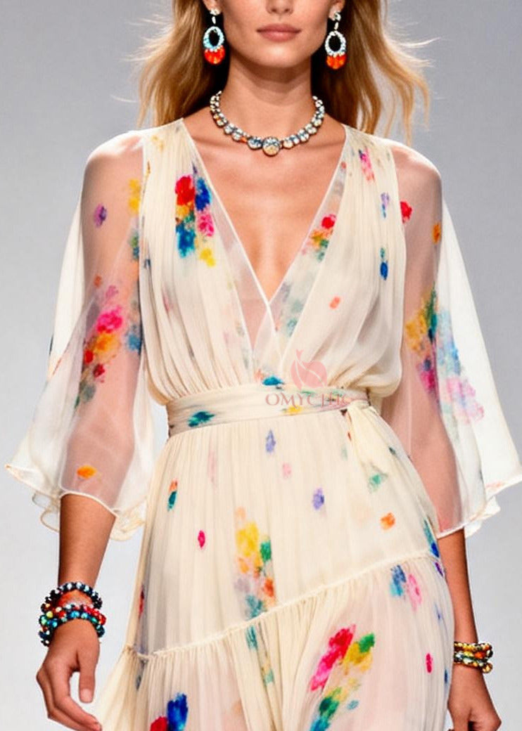 Rose Draping Chiffon Beach Dress Oversized Summer